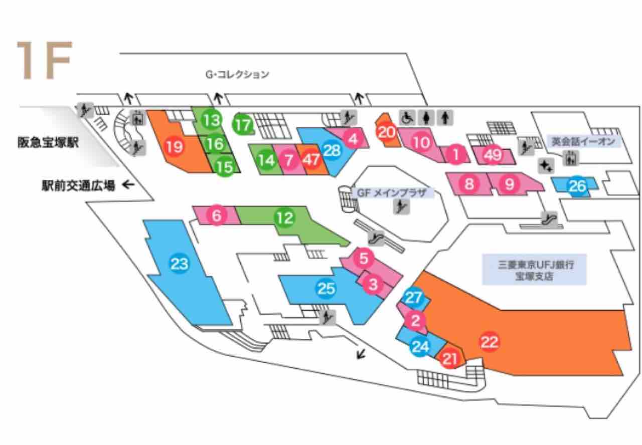 場所は、阪急宝塚駅前のソリオ宝塚1階で、東京三菱UFJ銀行の隣で宝塚パンケーキ「Cafe de Voila」さんがあったところ(フロアマップの㉒)。