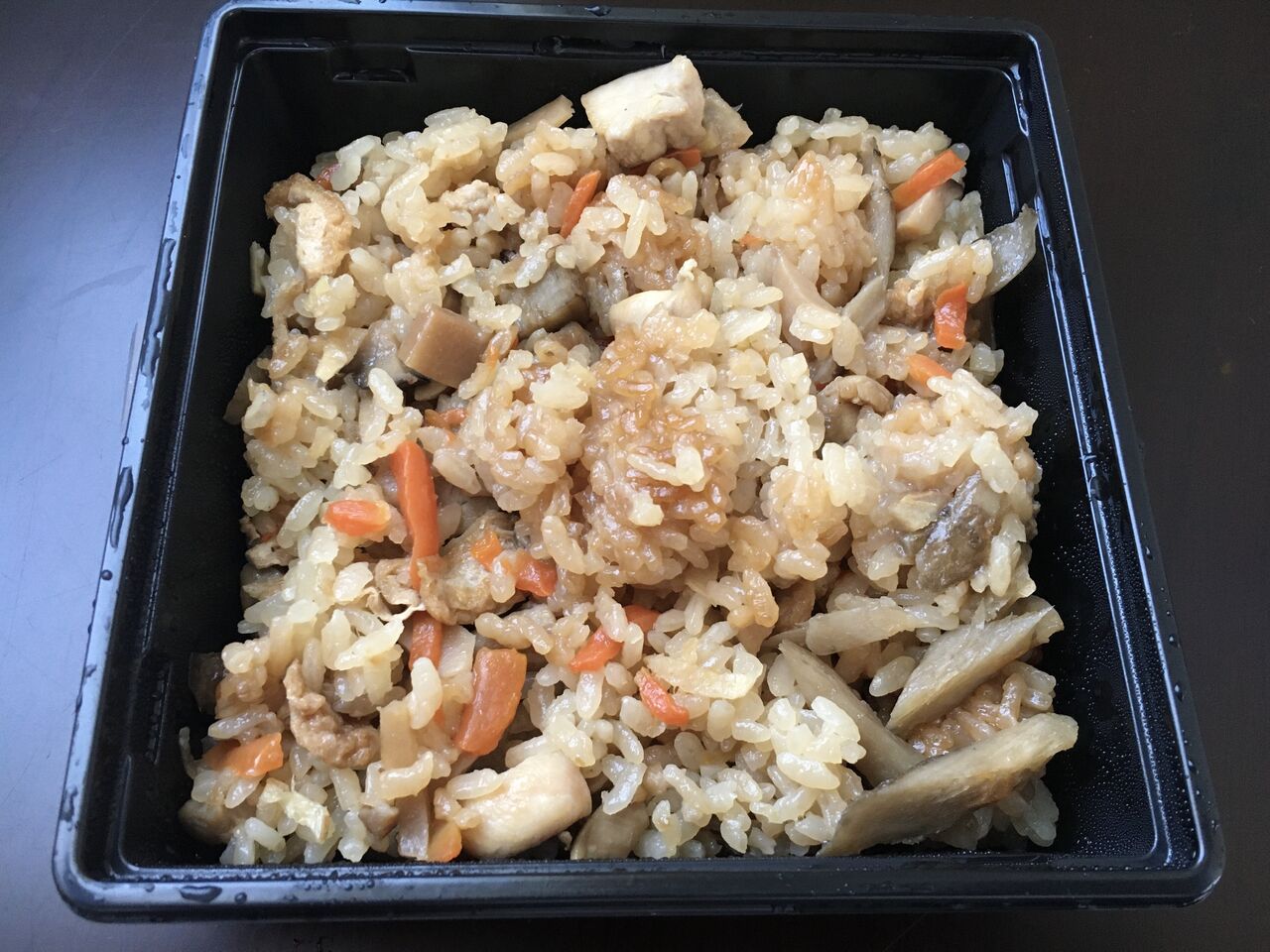 鶏肉・ごぼう・にんじん・あげ・しいたけなど具だくさんで、お米もふっくら炊き上がっています。やさしい味つけなので、お子さんにもおすすめです!税込330円でした。