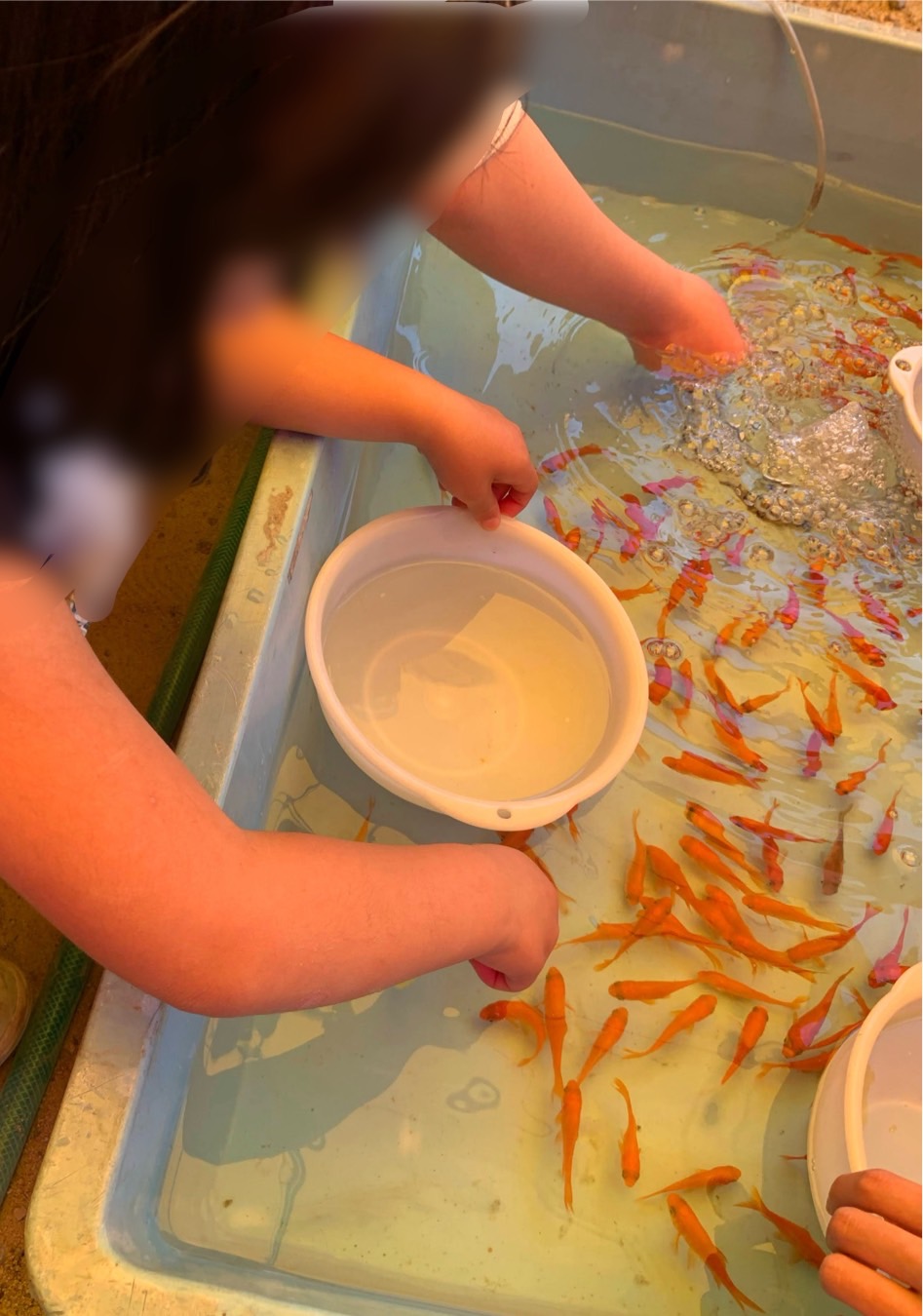 金魚すくい遊びもあり、1回100円で誰でも楽しめます。