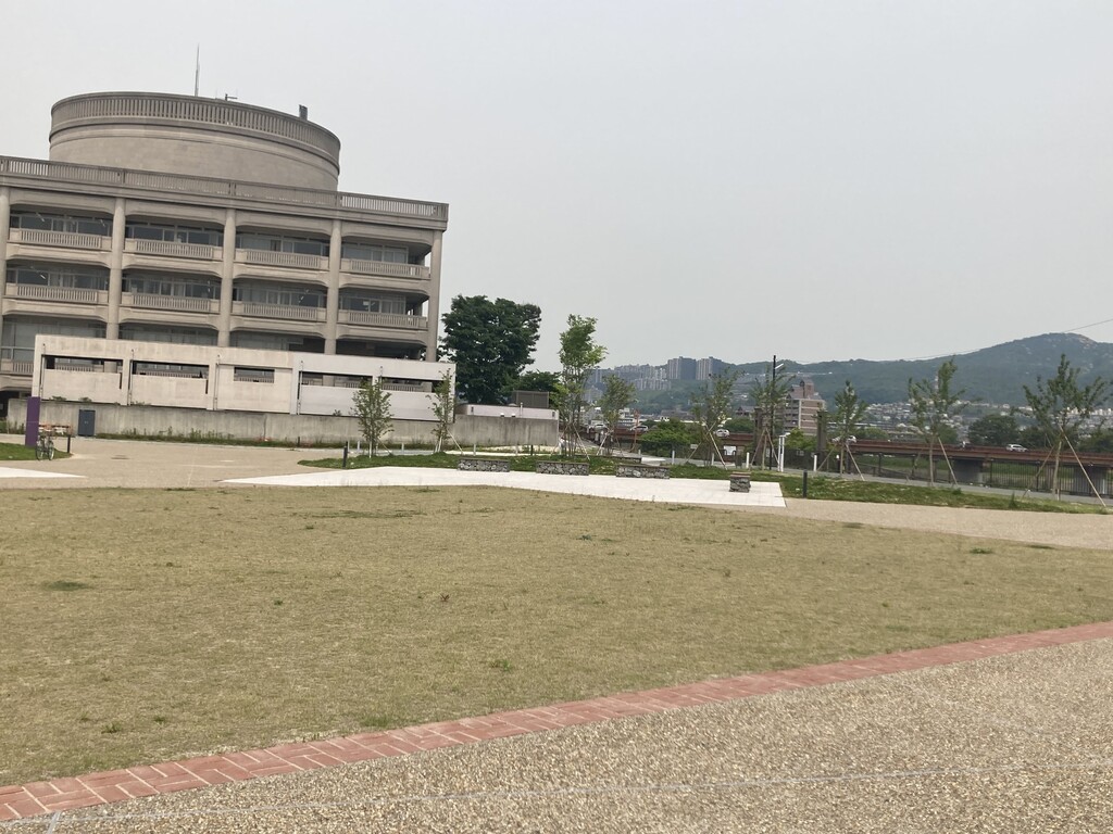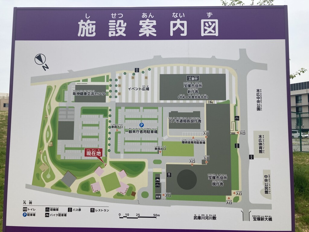 東洋町にある、宝塚市役所の新庁舎の建設が進んでいますが、末広中央公園からやや東に進んだところに「河川側ひろば」がオープンしていました。