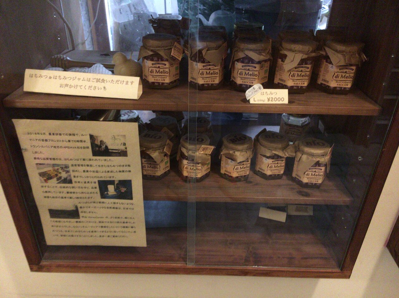 養蜂場だからといって蜂が飛び回っているわけではなく、養蜂はカフェスペースの裏手にあるそうで、季節的には春夏の採蜜の時期がそこそこ忙しいのだという。そこで採蜜できたものから、はちみつや、それらを使ったスイーツ等がこのカフェで楽しめるという素晴らしい空間だ。
