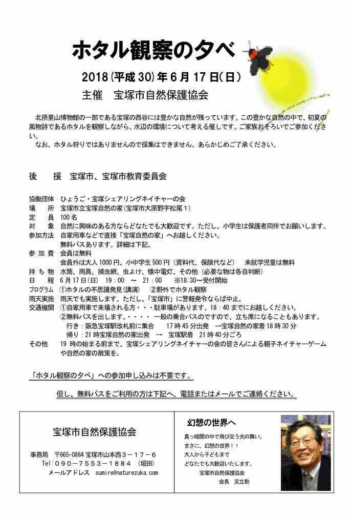 2018年6月17日(日)19時~21時(受付18時半~)雨天実施(宝塚市に警報発令の場合中止)