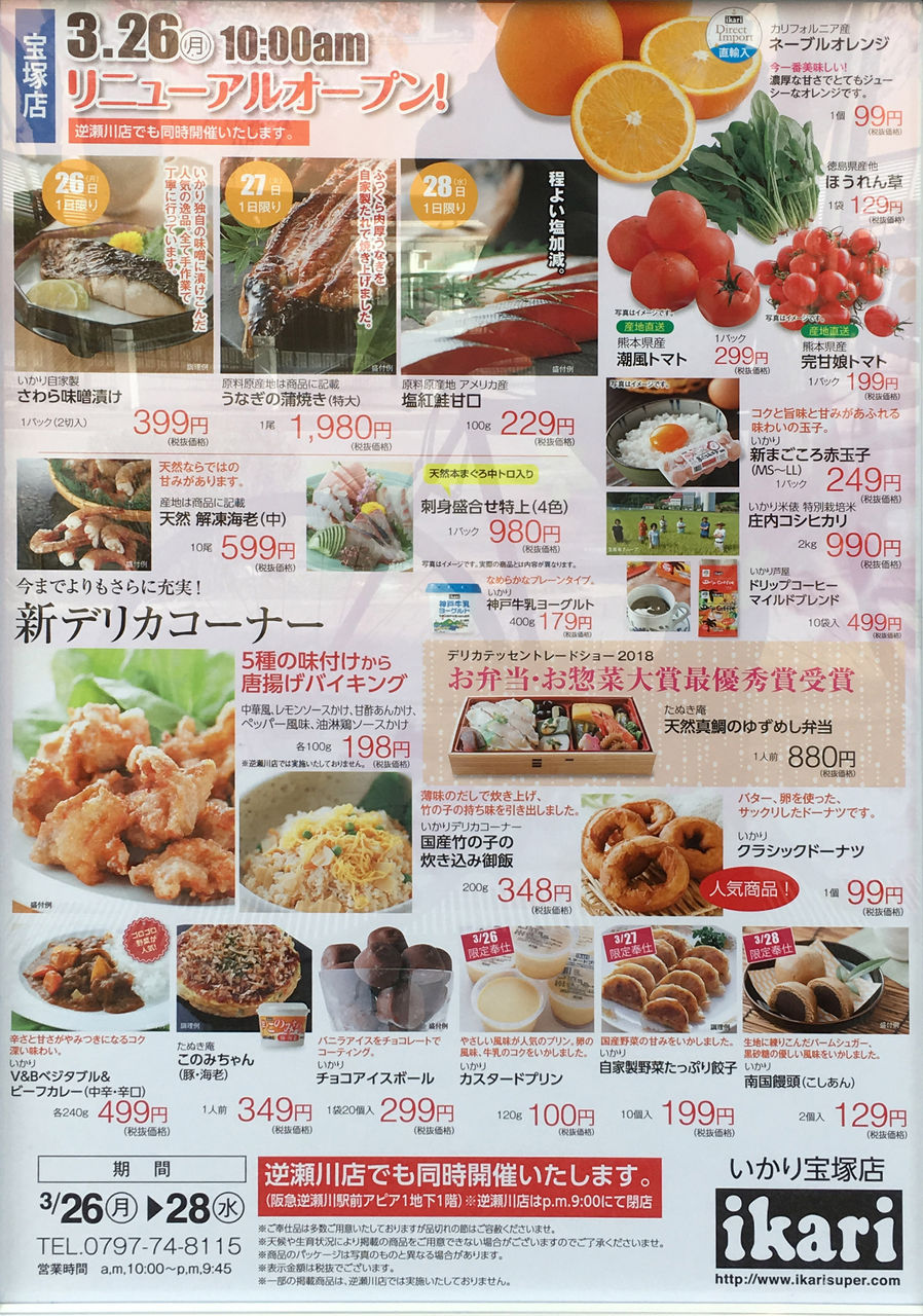 いかり宝塚店 リニューアルオープン 本日3/26(月)10:00開店