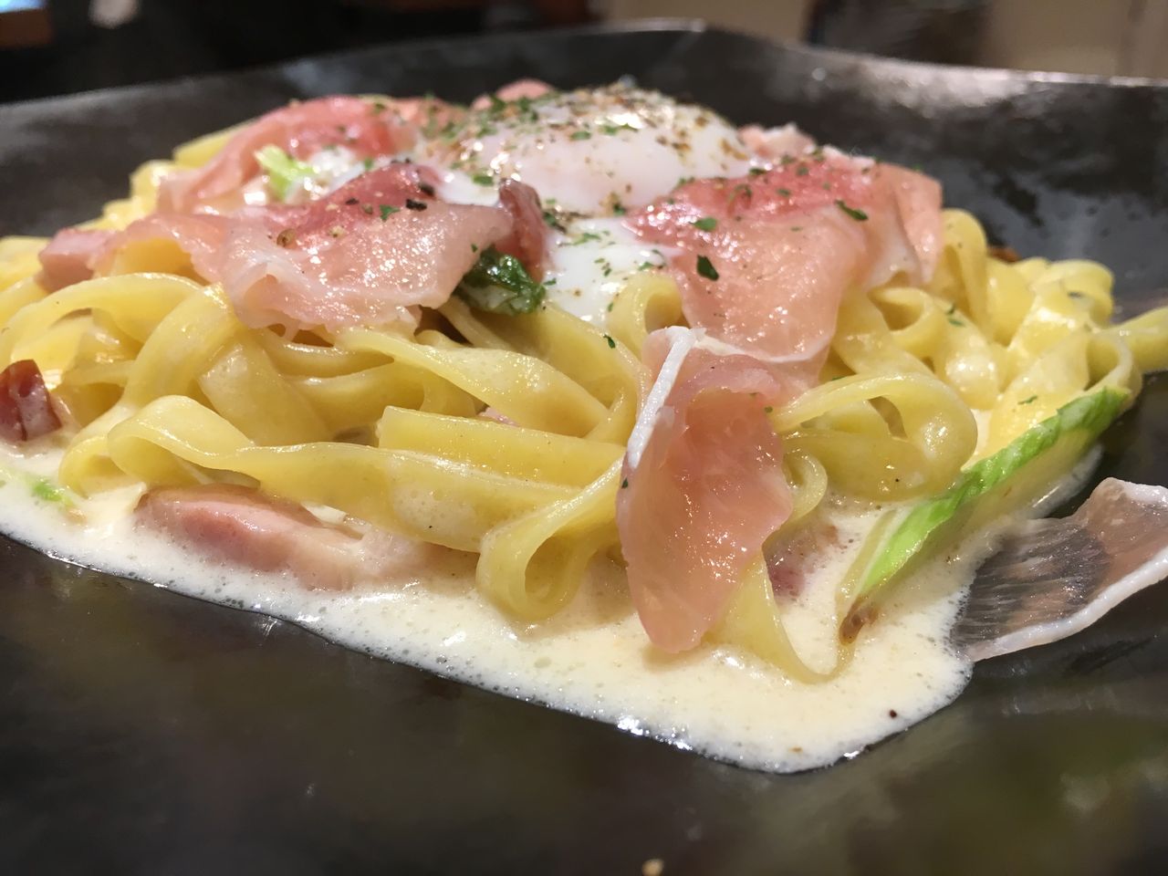 こちらは、半熟玉子と生ハムのクリーミーカルボナーラ(1,080円)