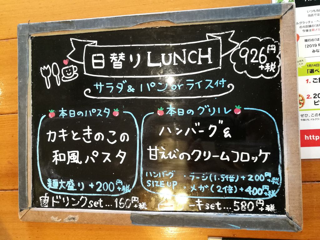 この日の日替わりランチです。リーズナブルな価格でセットメニューも充実していますね。