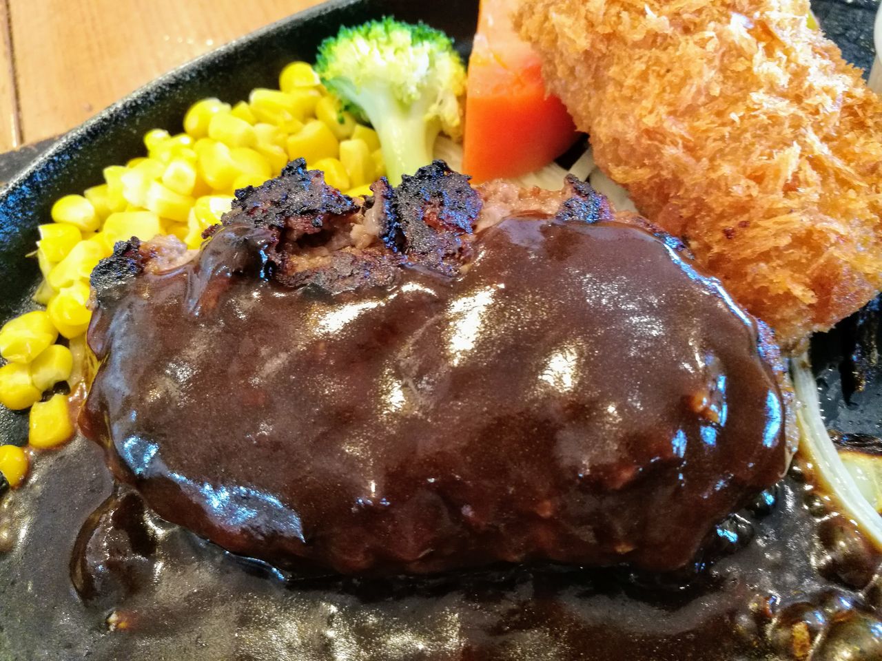 ハンバーグに甘エビのクリームコロッケとボリューム満点でした。