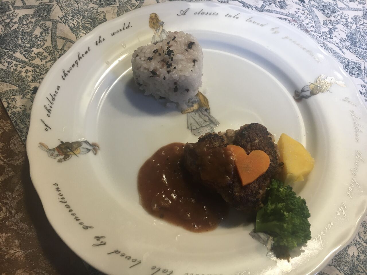 期待していた通り、ハンバーグはとってもジューシーでおいしかったです。お料理の中にもハートやスペードの形の野菜などが入っていて、見た目にも楽めます。