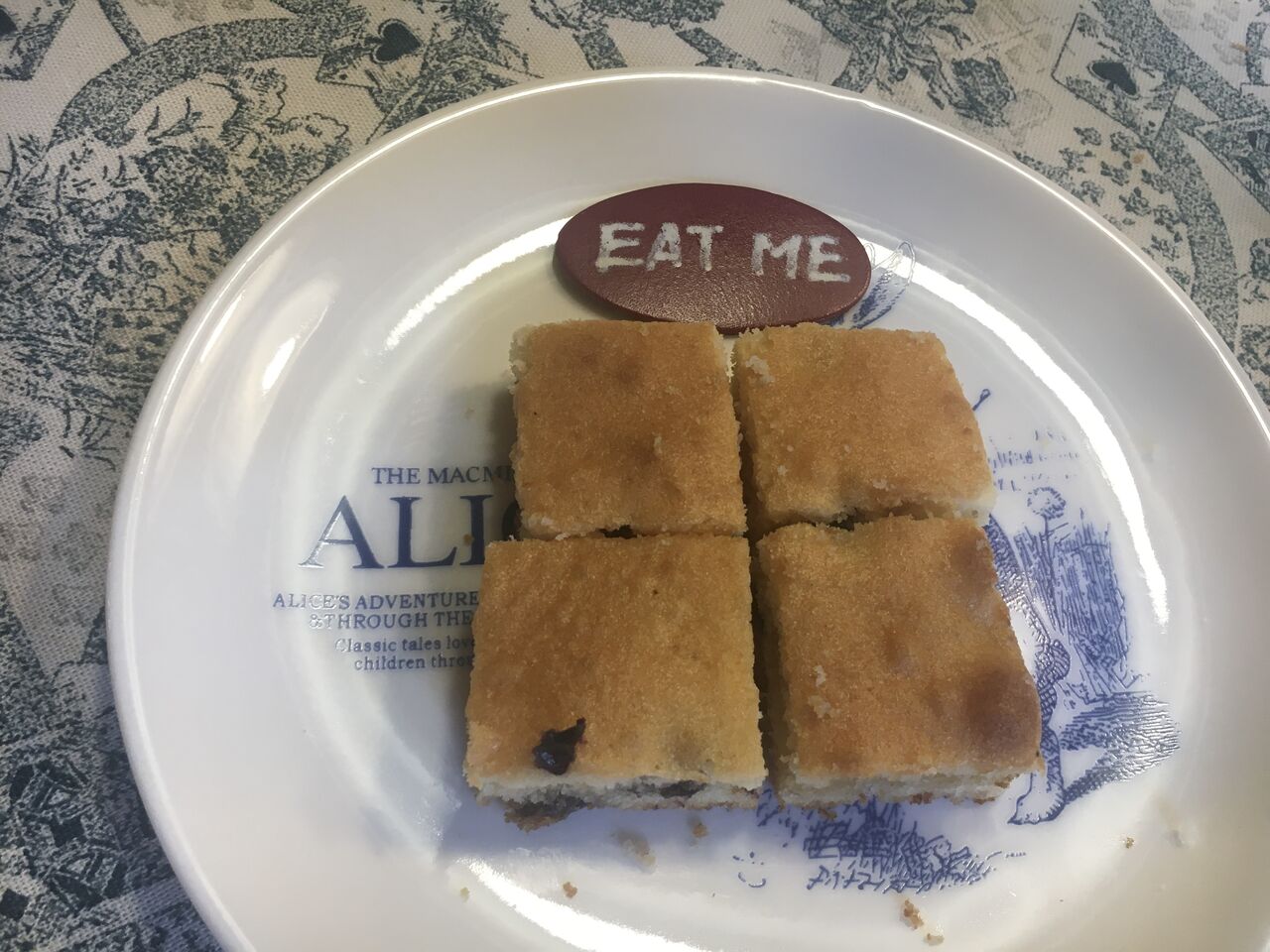 最後に出てくるのは、「EAT ME」と書かれたお菓子。