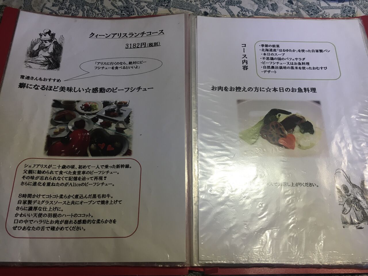メニューの「肉汁がジュワ」、という一文に惹かれて、2273円(税別)のアリスコースを選択。