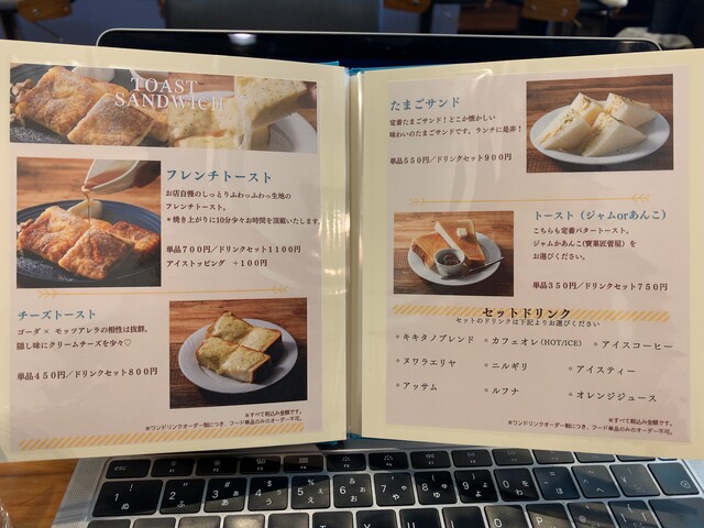 IMG_1372店内のレイアウトは、入り口から左側がテーブル席(12)、右側がカウンター席(6)で、お店奥にもテーブル席(4)がありました。全22席のようです。この日は、平日の11:00頃に来たのですが、1テーブルのみ空いている状態で、私はそこに座りりましたが、カウンター席は写真の通り空いていました。メニューを眺めて注文したのは、トーストセット。