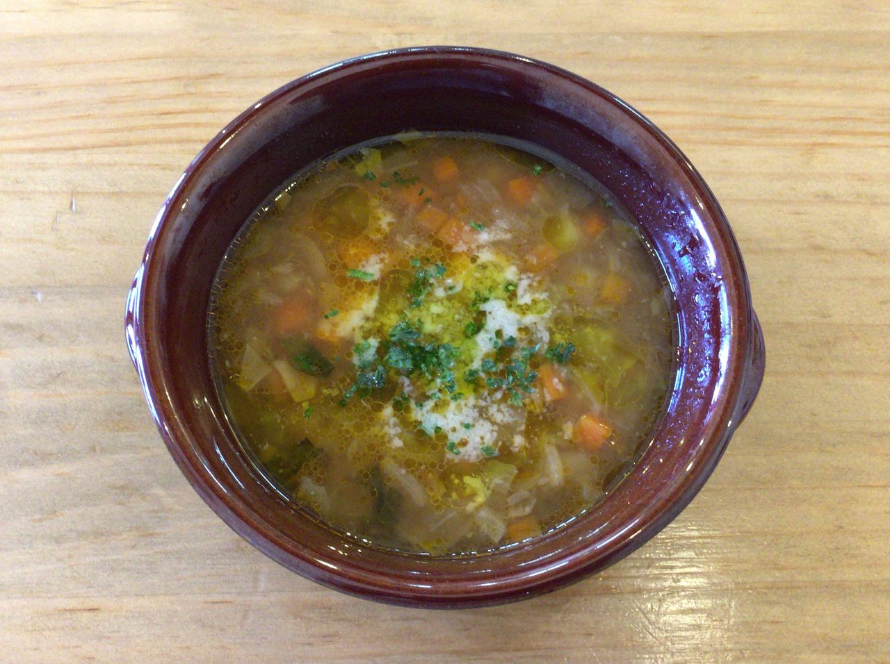 こちらは、ランチメニューのスープで、ドライアプリコットと紅茶のソース。まろやかでコクが有る。