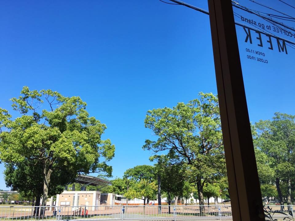 末広中央公園向かいにあるDELI & COFFEEの「MEEK to go stand」。いつもながらに鮮やかなphotoを公開されています。公園の向かいにあるMEEKの店舗から晴れた日の眺めは、大変気持のよい風景が目に入る。