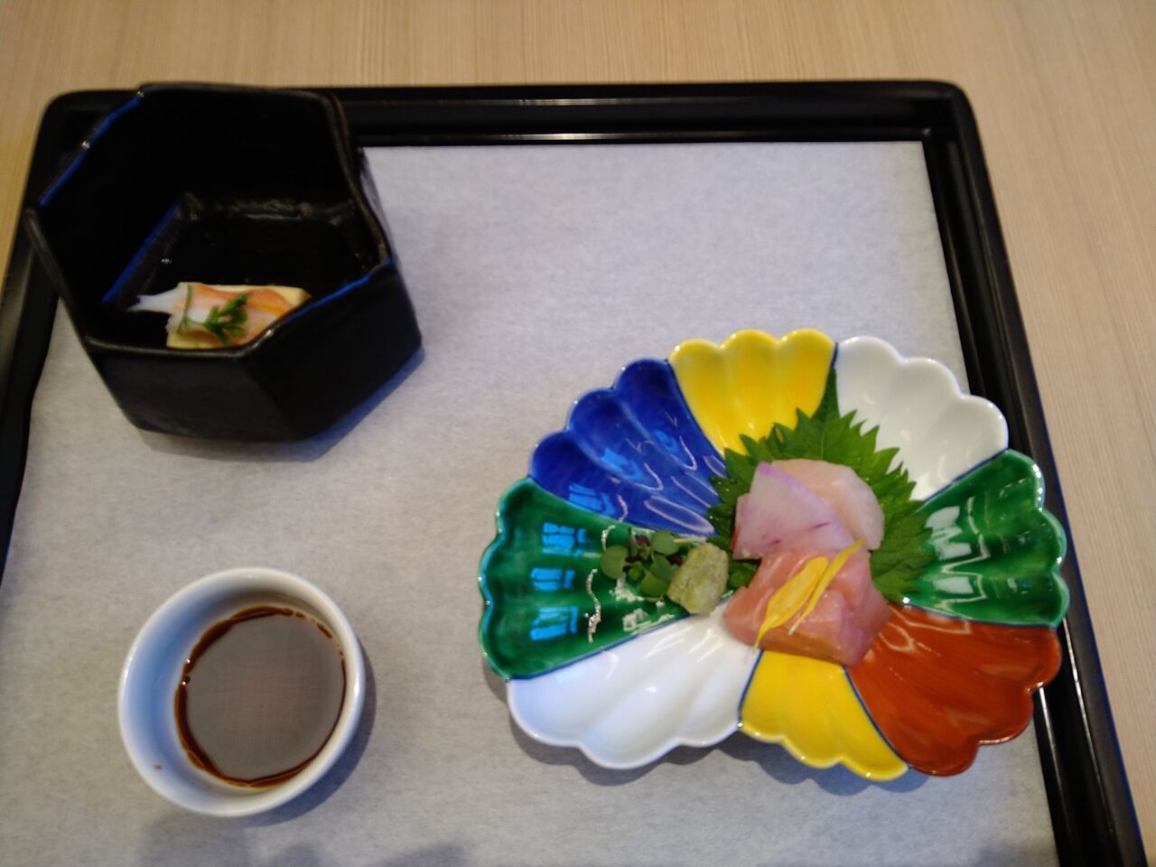 土佐醤油で頂く二種盛りのお造りです。