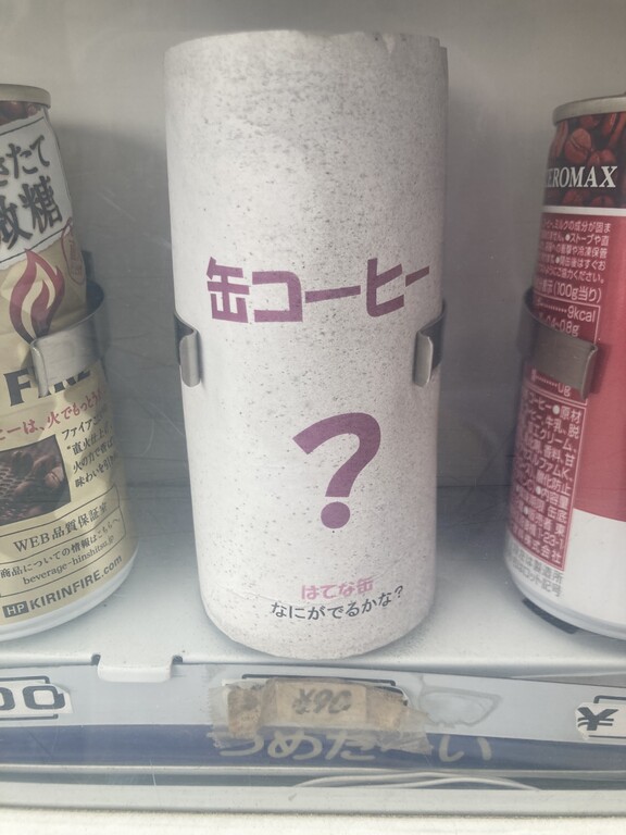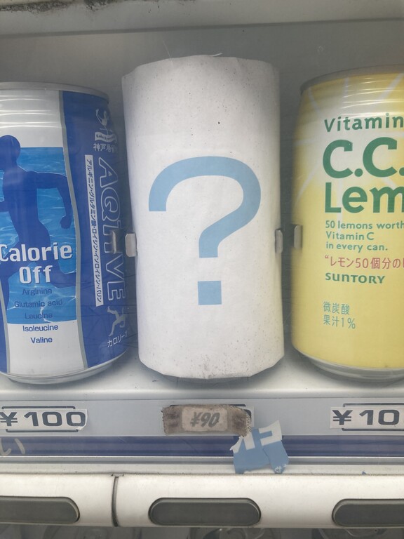 「?」と書かれた缶ジュース?値段はなぜか90円。