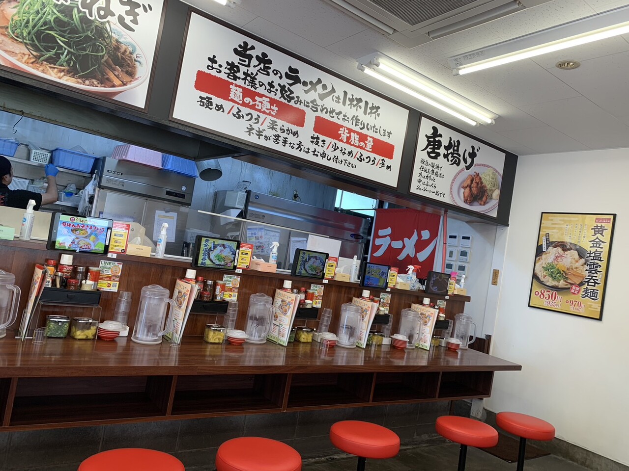1. 「中華そば 雀 宝塚店」のカウンター椅子がおもしろい。