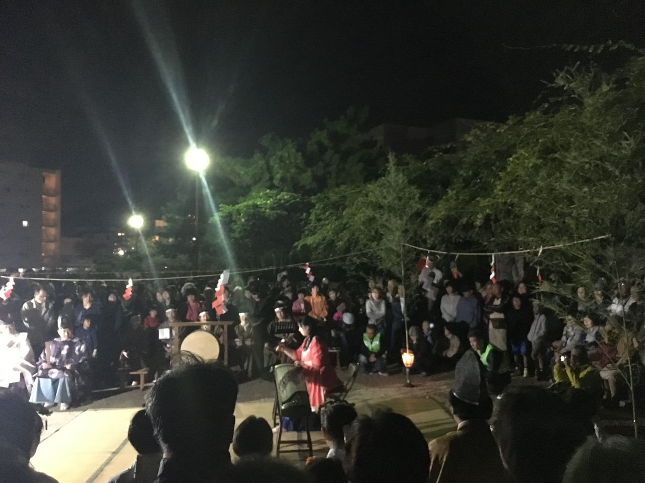 親水公園では、月明かりの下、たくさんの人たちが舞や、琴の生演奏など楽しんでいました。