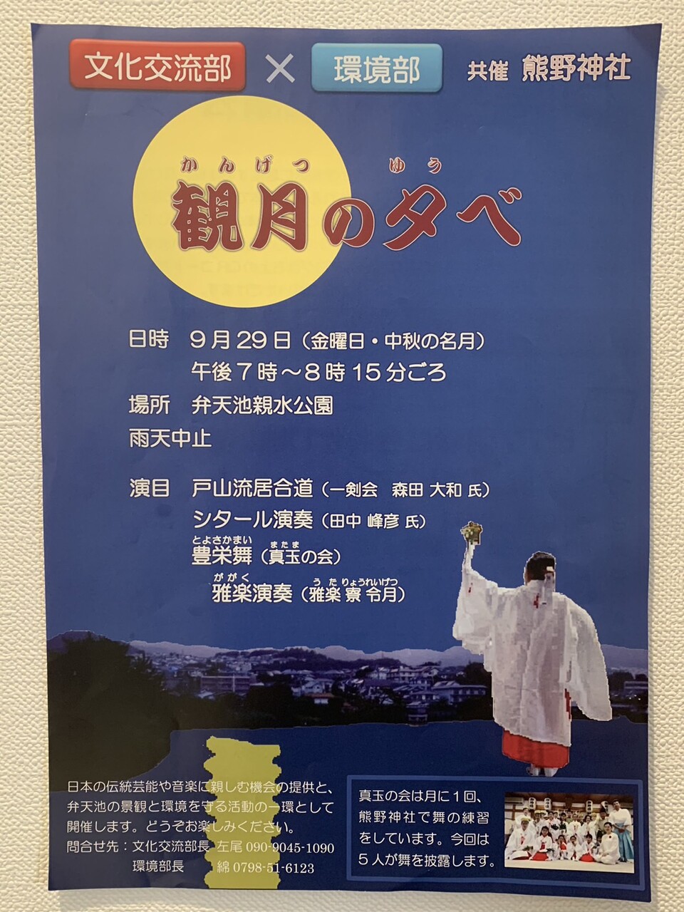 阪急仁川駅から徒歩3分の弁天池親水公園で行われる観月の夕べは、日本の伝統芸能や音楽に親しむ機会の提供と、弁天池の景観と環境を守る活動の一環として 開催されます。( 3年ぶりの開催です!)