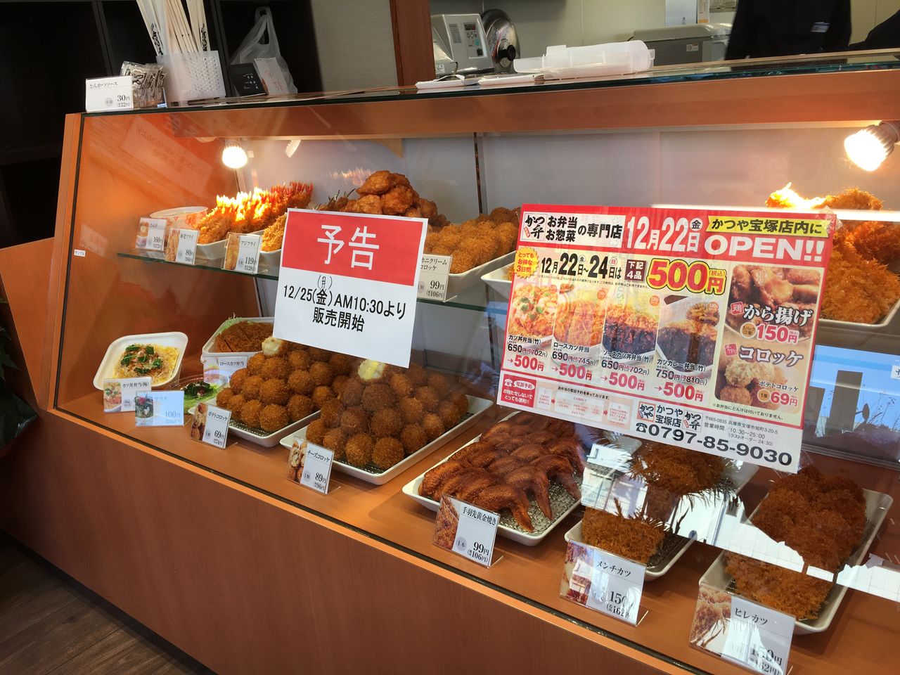 176号線宝塚TSUTAYA向いの「松屋」後に、カツ丼・とんかつの「かつや」が12/22にオープンした。12/24まではメイン4品のみのスタートで、開店記念として全て各々500円(税込)。200円以上のお得になる格好。お弁当を含めた全メニュー提供は12/25から。