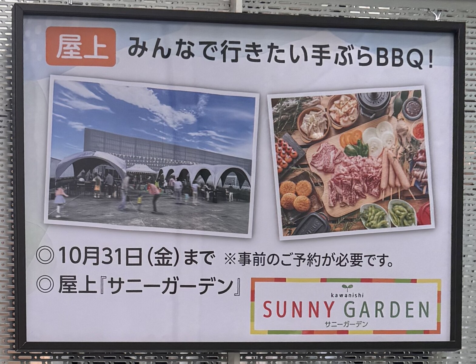 そして、今回川西阪急スクエア屋上「サニーガーデン」で手ぶらでBBQを楽しめる施設が期間限定でオープンしました。