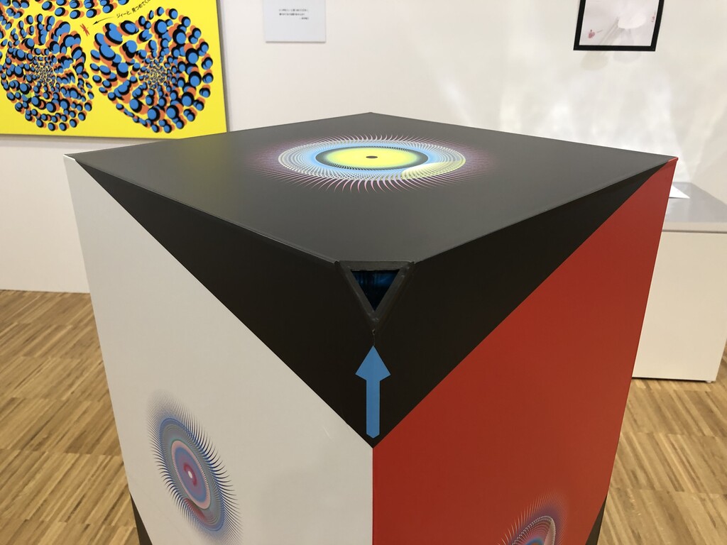 この矢印の部分から覗いてみると、万華鏡のように揺れ動く光と音の作品が鑑賞できます。
