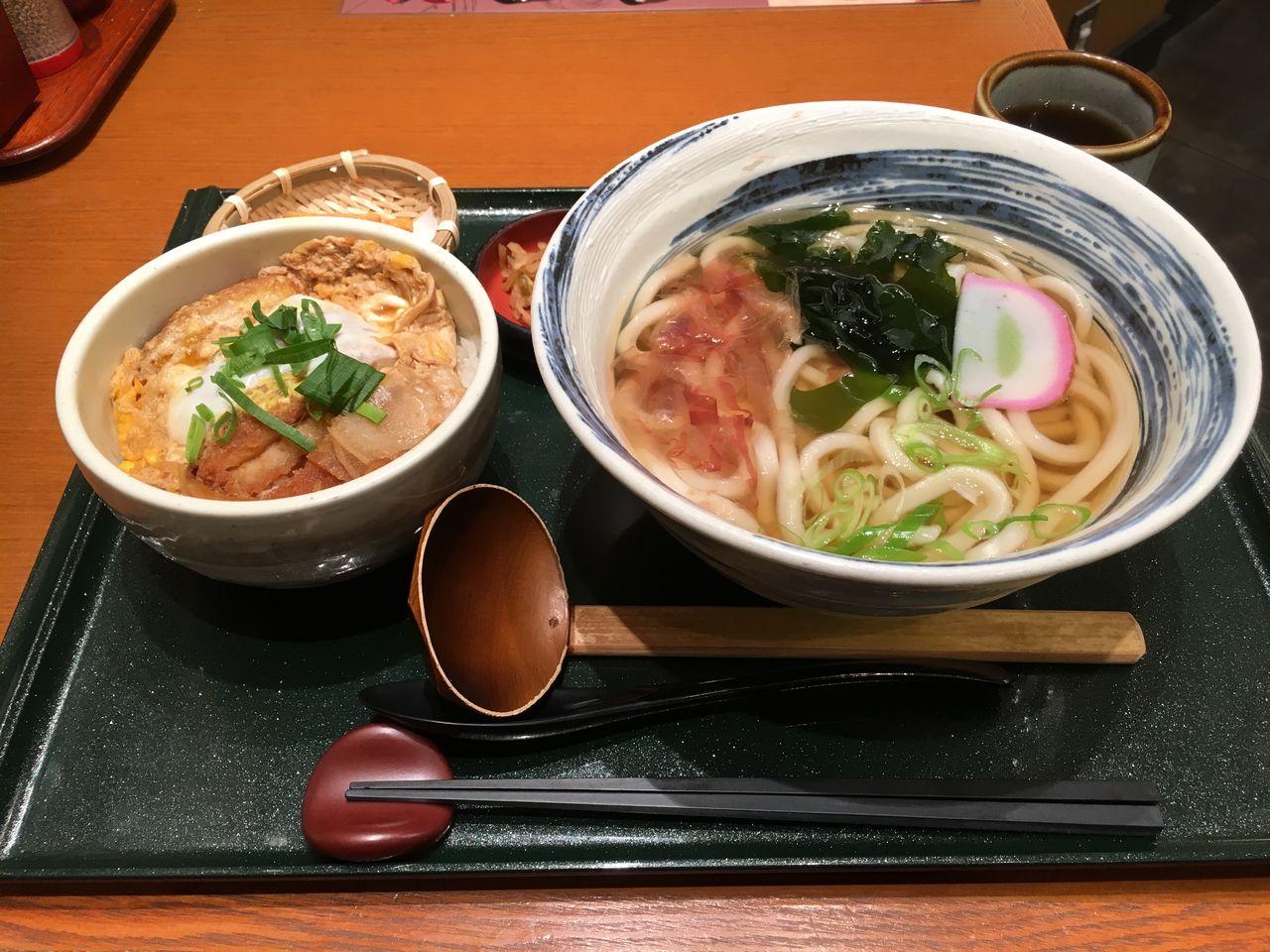 宝塚駅付近でお急ぎの時はソリオの地下にある「杵屋」が早いという噂を聞き、実際にどのくらい早いのか体感しに行ってみた。たまたまかもしれないが、その日は並ばずには入ることが出来た。座席に案内され、注文したのはカツ丼定食の温かいうどん。