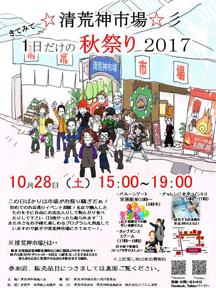 阪急宝塚線清荒神駅北側にある市場で今年で60周年。時代と共にシャッターの目立つ通りになりつつあるが、営業の店舗も多数ある。