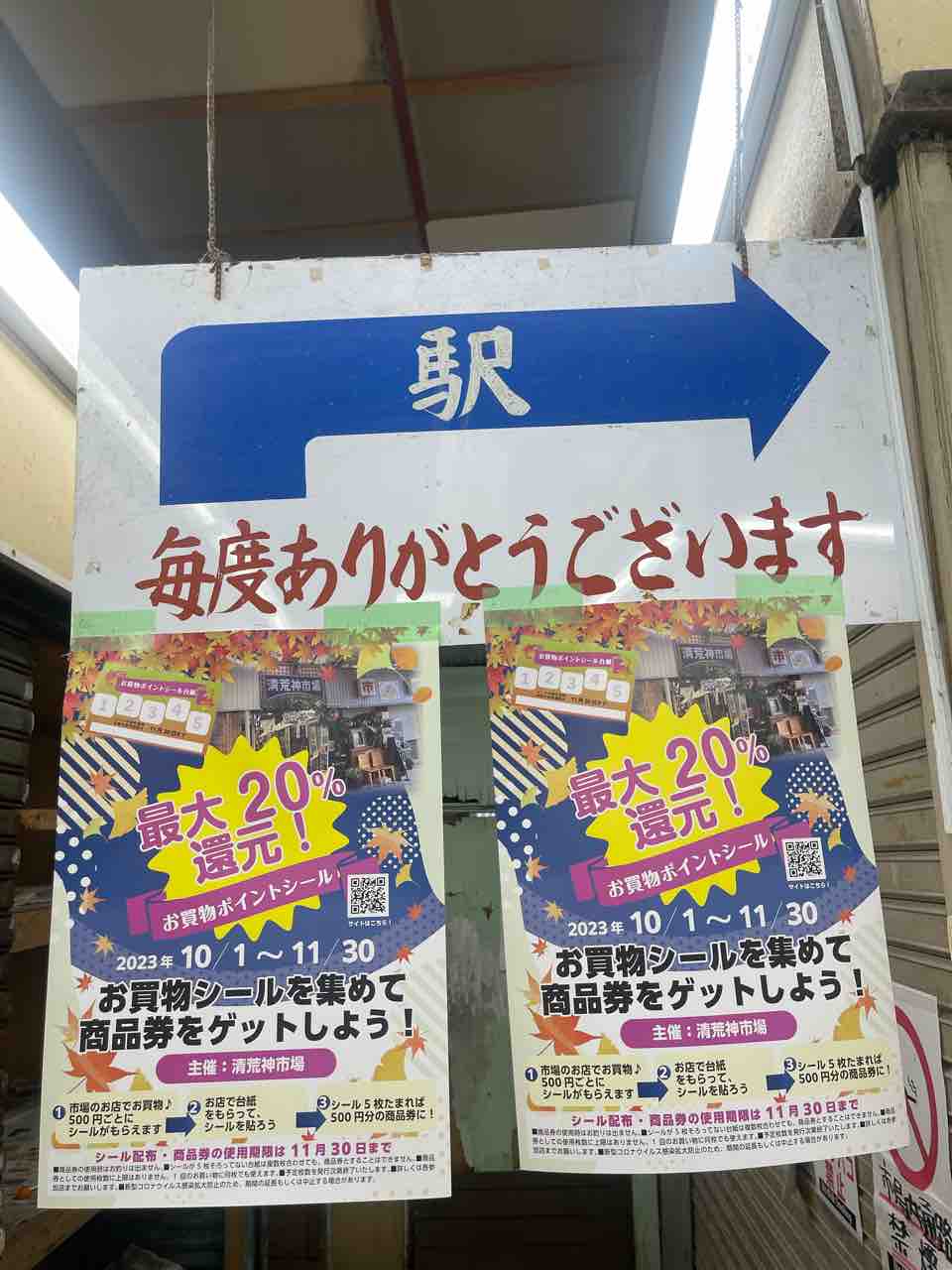 イベントの秋ということで、清荒神エリアでは参道三昧と同じ日程で、清荒神市場でもお得なイベントを開催しています。