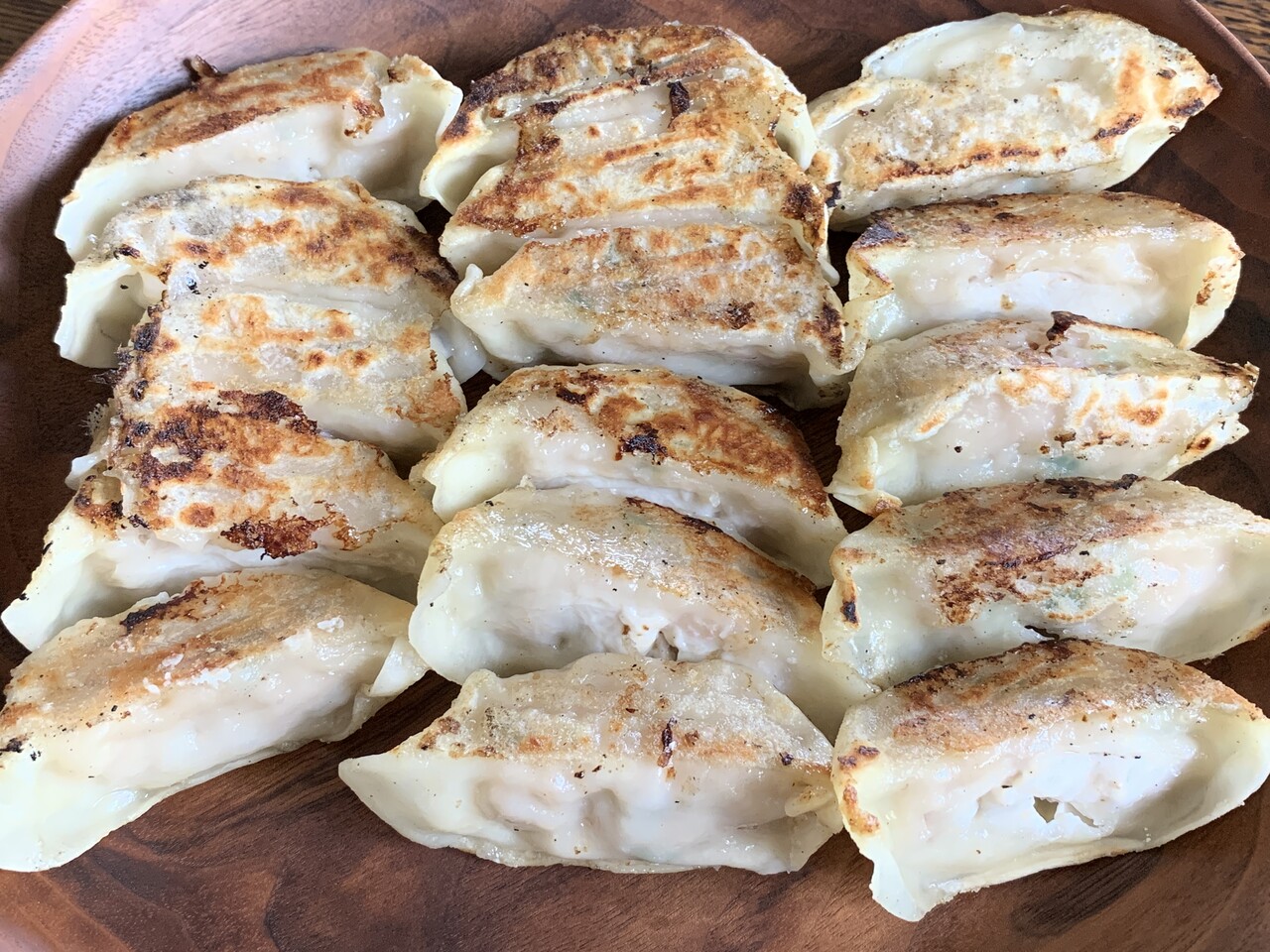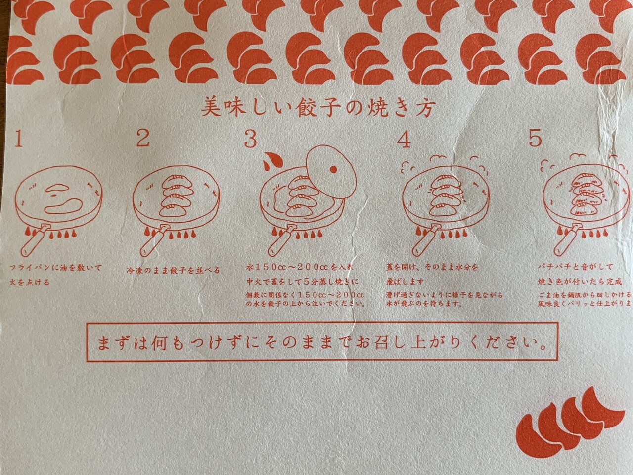 自宅に帰り早速焼いてみた。包装紙に「美味しい餃子の焼き方」も記載があり、領収証も包装紙についている。IMG_4846