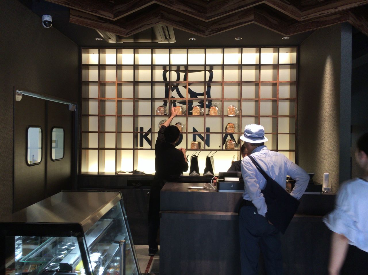 奥に見える棚の一区画毎に食パンが1本ずつ並べられていて、購入時はそこから取り出して渡してくれる。アートな感覚の壁なのに実は実用的に考えられていたようだ。私が購入時は、あと全部で10本程度で、店内をみているうちにみるみると減っていく様子がみてとれる。