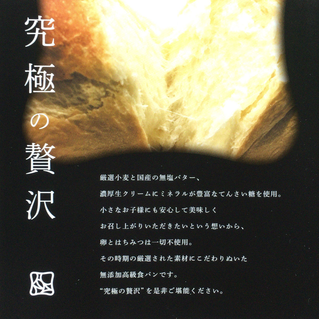 取り扱う商品は、「花」と「月」の2種類。どちらも 1.5斤 800円 (税抜)。一つずつ購入した。「花」は国産無塩バターと濃厚生クリームを使用したミルク風味の食パンで、まずはそのまま食べることでも味を楽しめる。「月」は小麦粉本来の味を楽しめるソフトな食パンで、焼かずにもっちり、トーストしてサクサクの2通りの楽しみ方があるそうだ。。卵とハチミツは一切不使用との事で、こだわりぬいた厳選素材で作られた「無添加高級食パン」で ”究極の贅沢” がコンセプト。