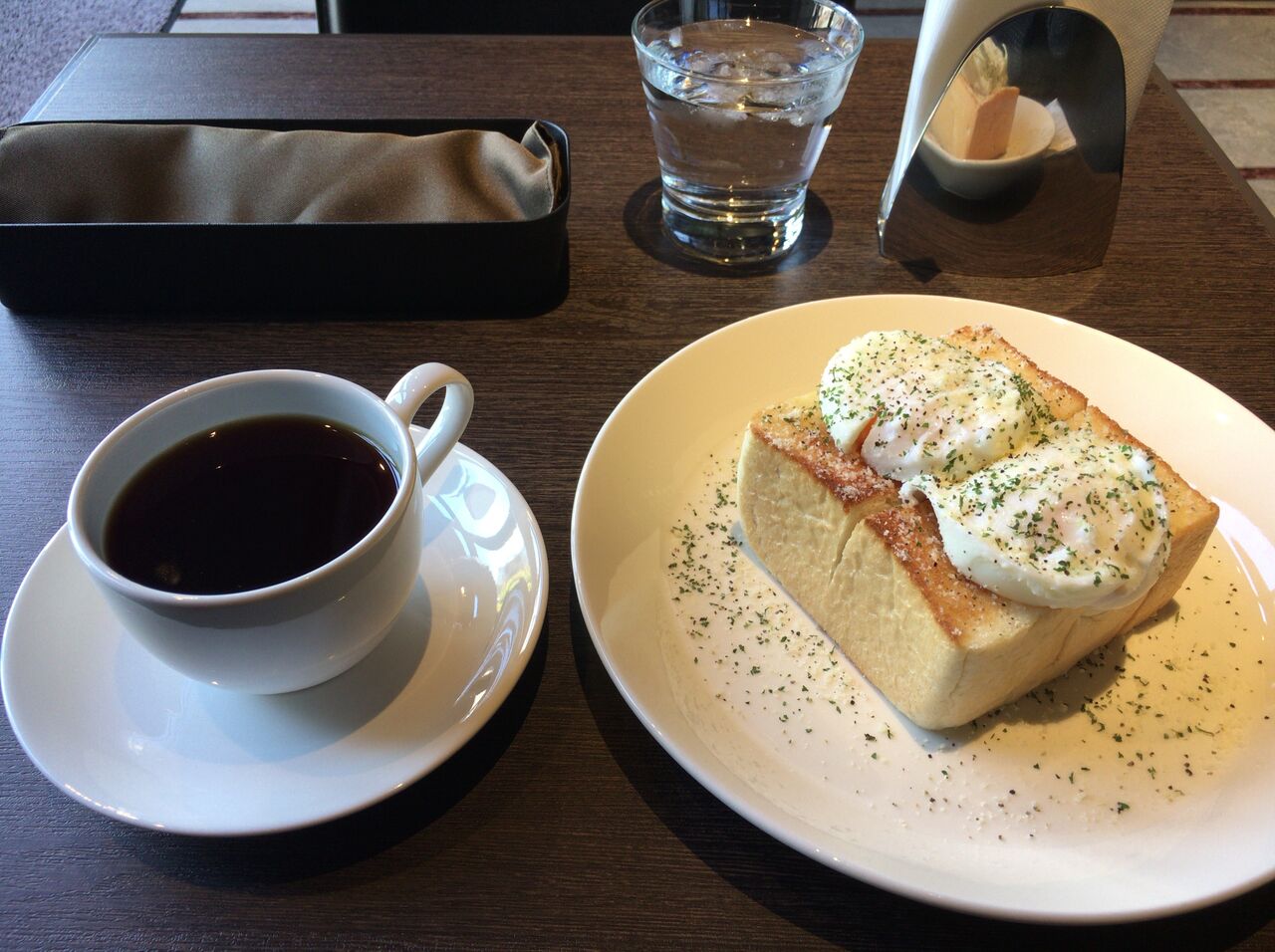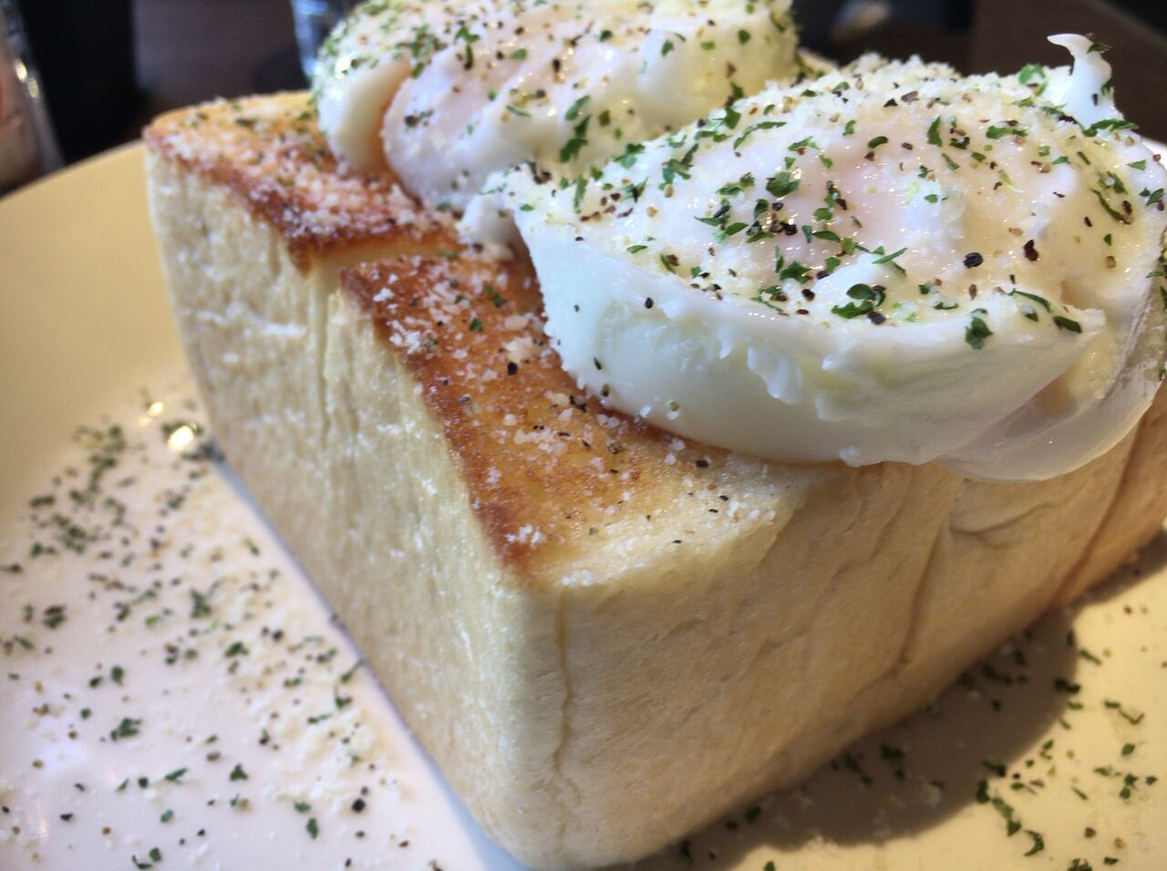 シンプルにバタートーストにしようと思ったが、「花」を購入したので、自宅でシンプルな味は楽しめるので、今回は、ポーチドエッグトーストを注文。
