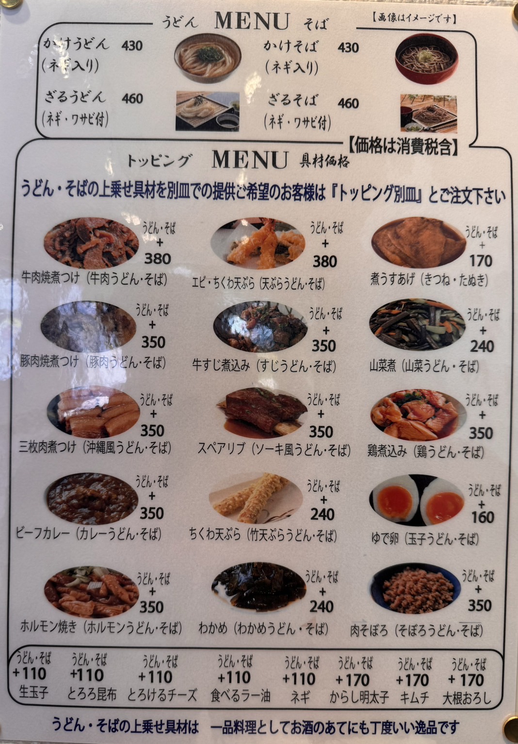主力メニューの「かけうどん」と「かけそば」は、それぞれ430円から提供されています。