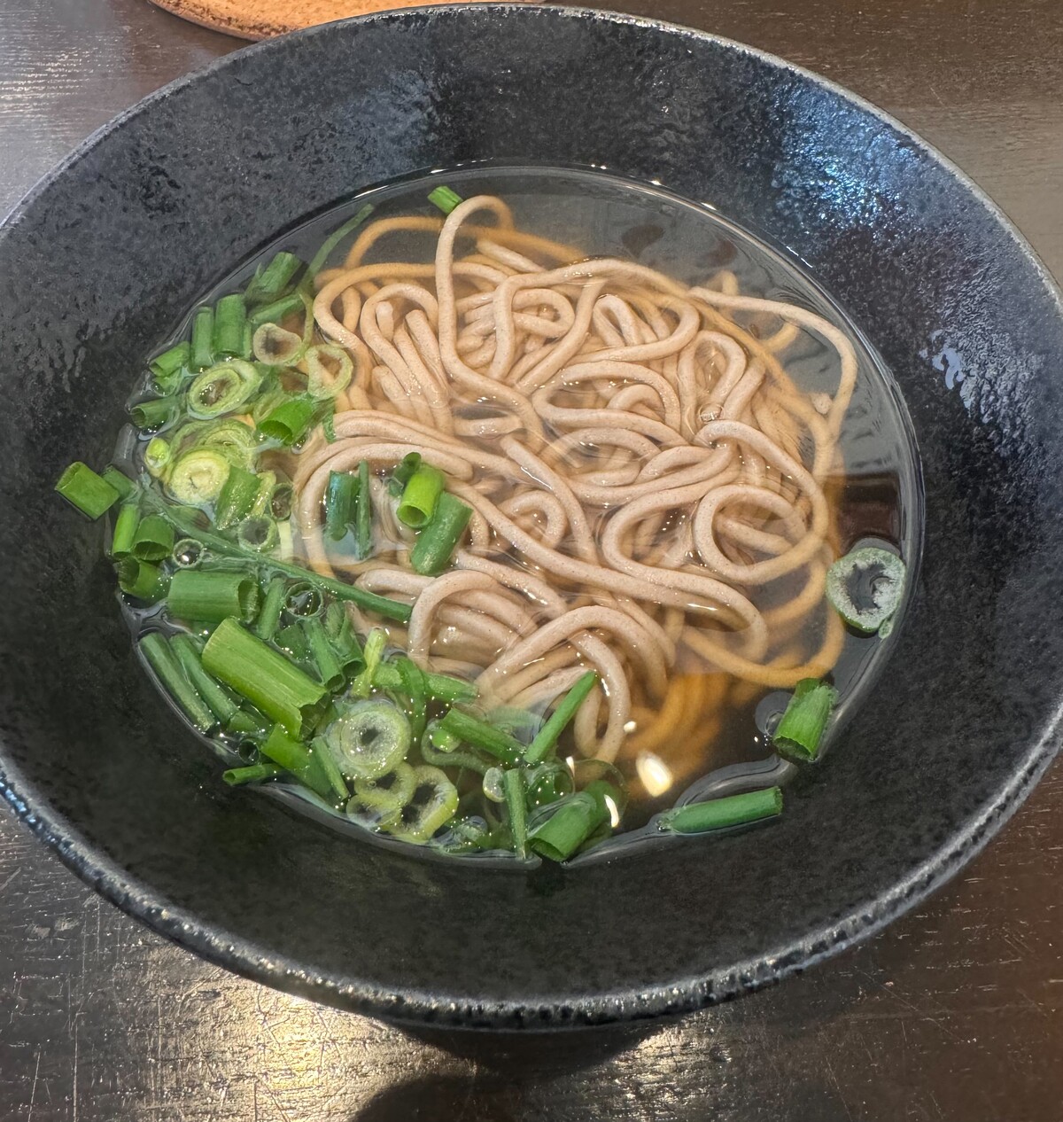 かけそばはネギのみのシンプルな構成ながら、出汁の風味が非常に豊かで、丁寧な調理が感じられる一杯でした。
