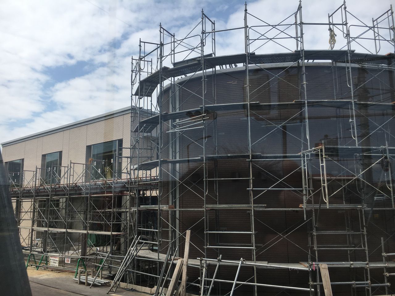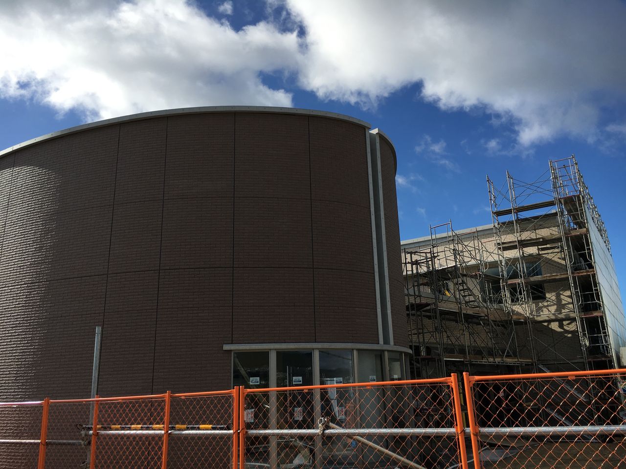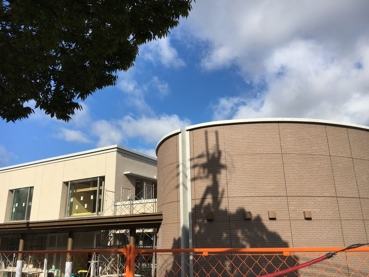 新しい中央公民館建築工事が概ね外観が形づいている。