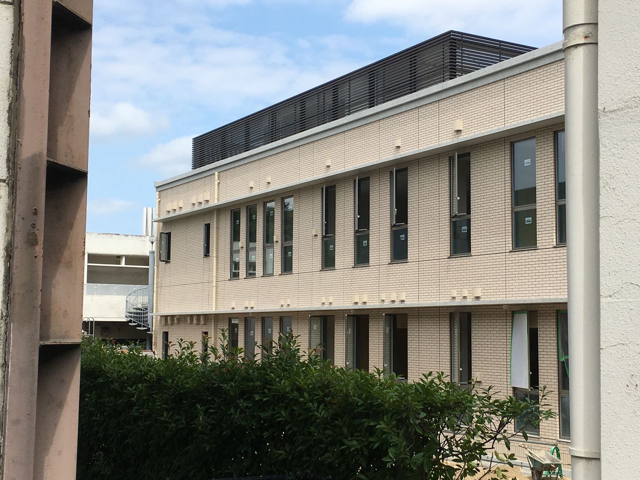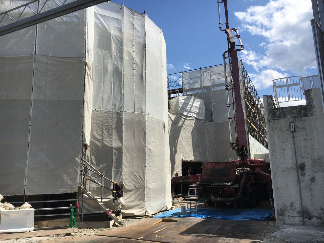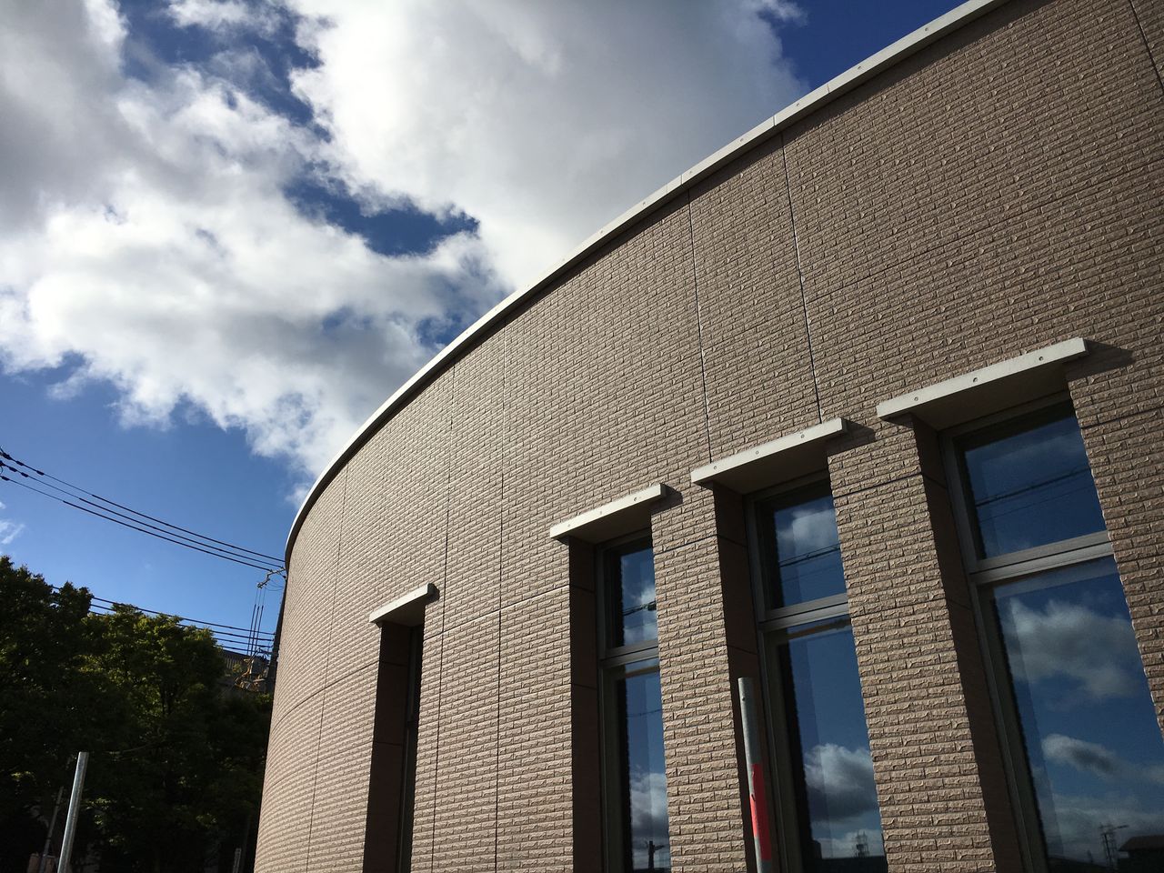 新しい中央公民館建築工事が概ね外観が形づいている。
