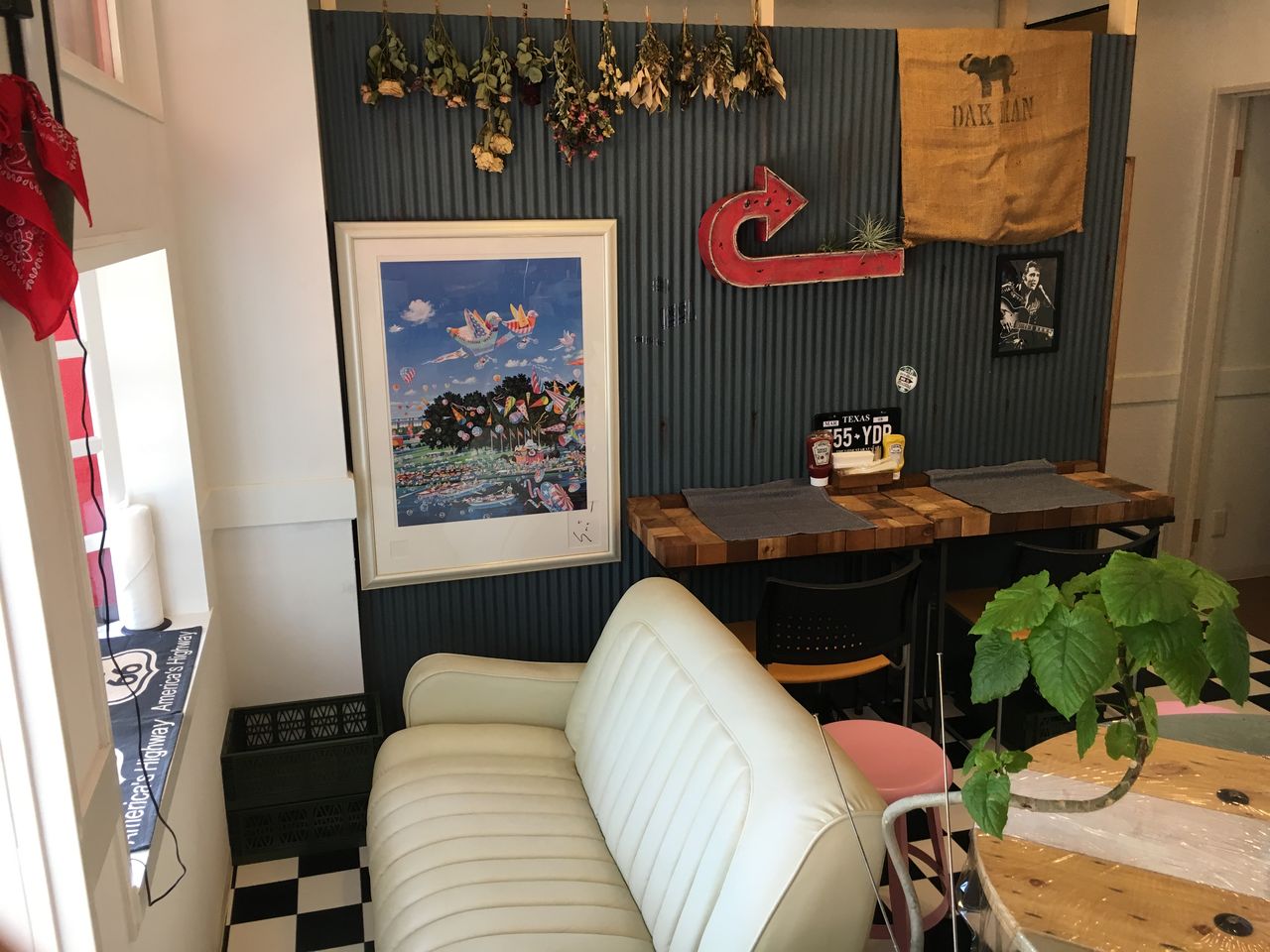 さらに聞くと、内装はすべてDIYで作ったそうだ。サビ塗装も入れてあり、雑貨屋のようでなかなかの味がでている。テーブルの上にステッカーのようなものにWifi Free とある。ノマドワーカーにとってはかなり嬉しい場所だ。