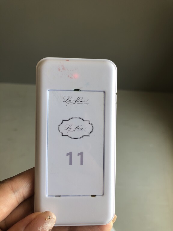 クレープは焼くのに5分ほどかかるので、呼び出しベルをもらって待ちます。