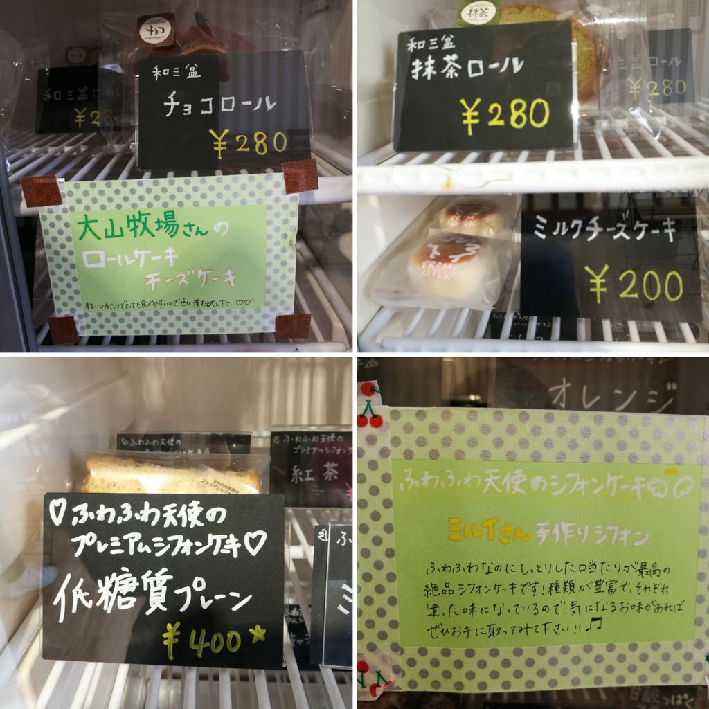 そして、スイーツはクレープの他に、ロールケーキ、miruiのシフォンケーキなどもあります。