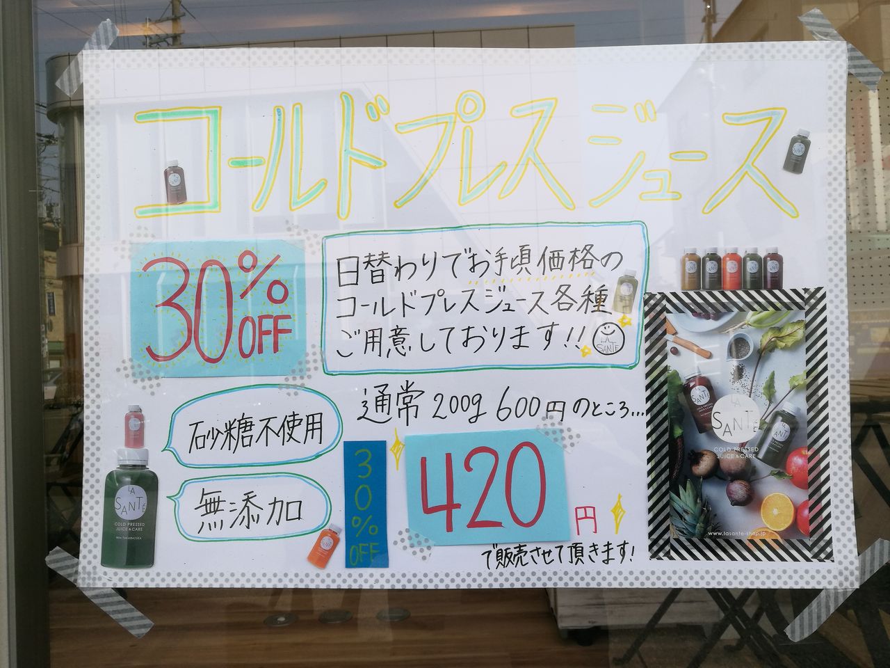 コールドプレスジュースがアウトレット価格で買えるLA SANTE(ラサンテ)小林店 はスイーツも美味しい。