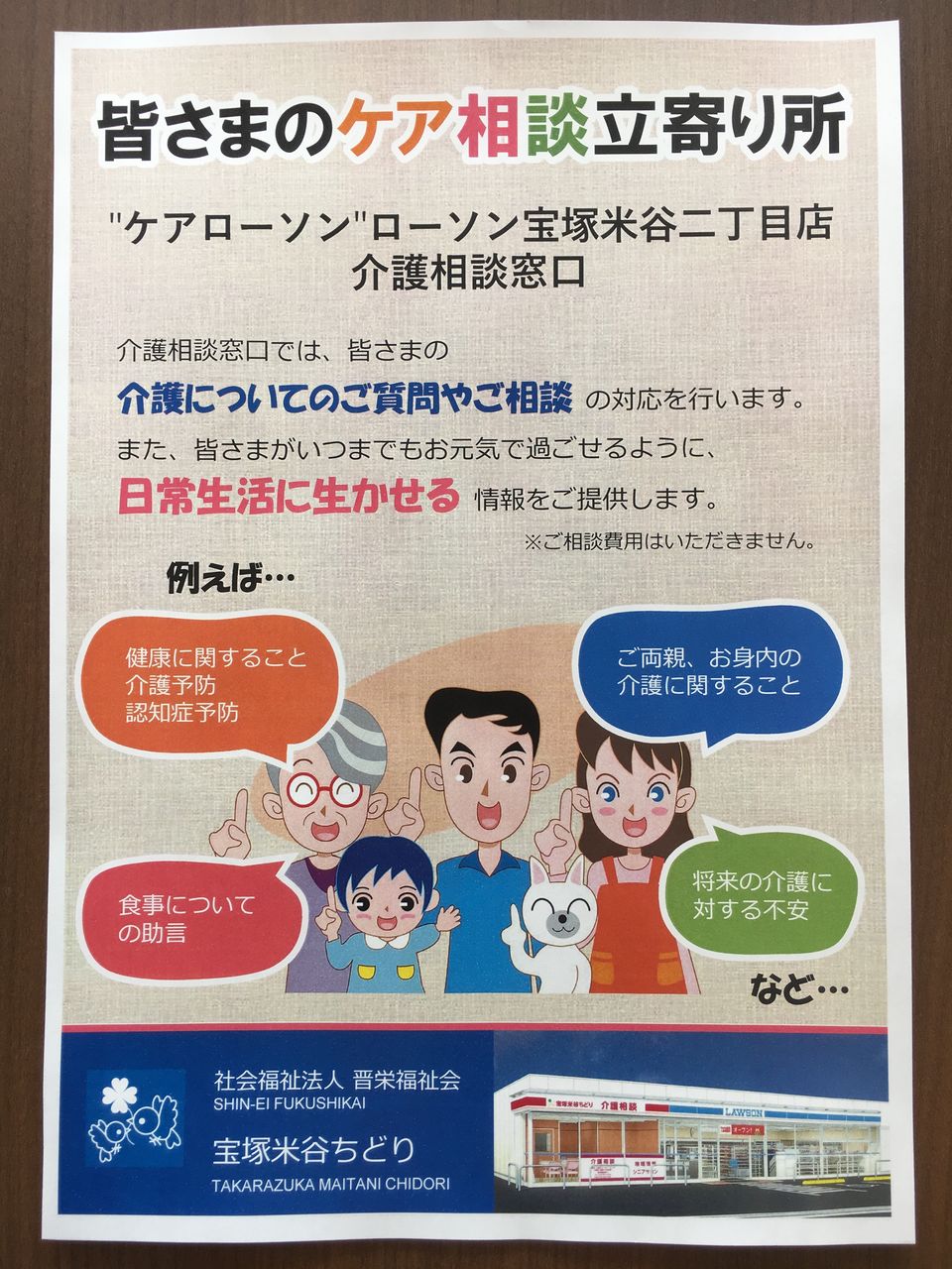 2月中旬にオープンしたローソン宝塚米谷二丁目店に行ってみた。ローソンは、まあいわゆる普通のコンビニだったのだが、併設されている介護相談「宝塚米谷ちどり」と店内でつながっていた。