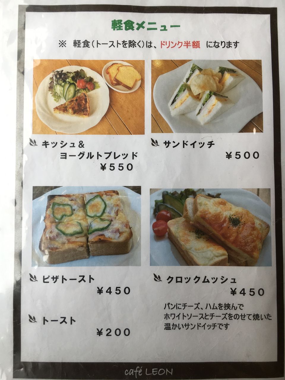 軽食メニュー
