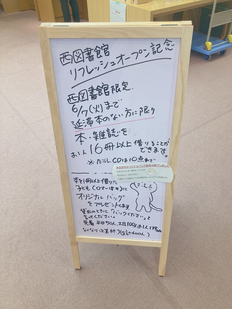 6月7日(火)までの期間は、リフレッシュオープン記念として、本や雑誌を1人16冊以上借りることができます!
