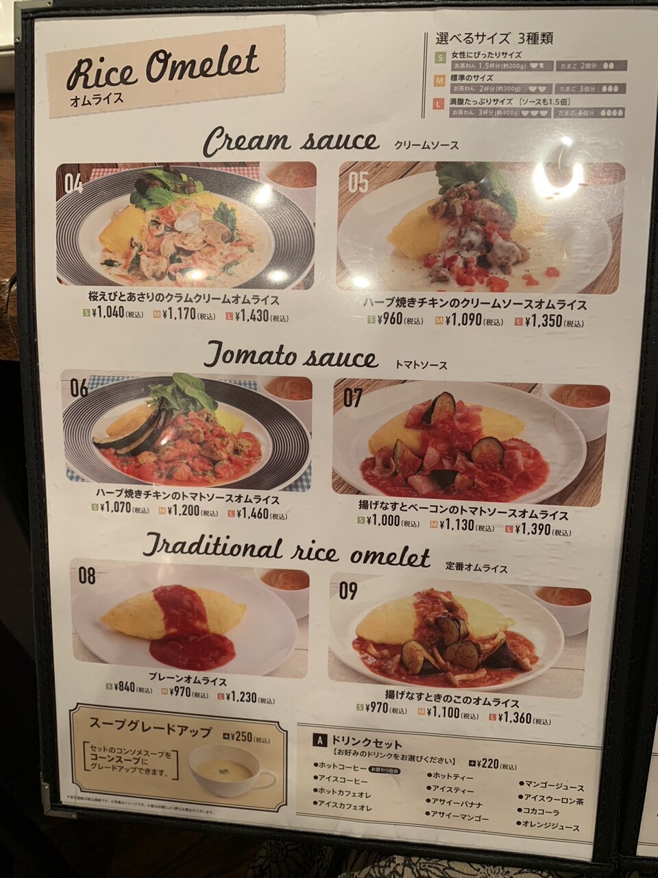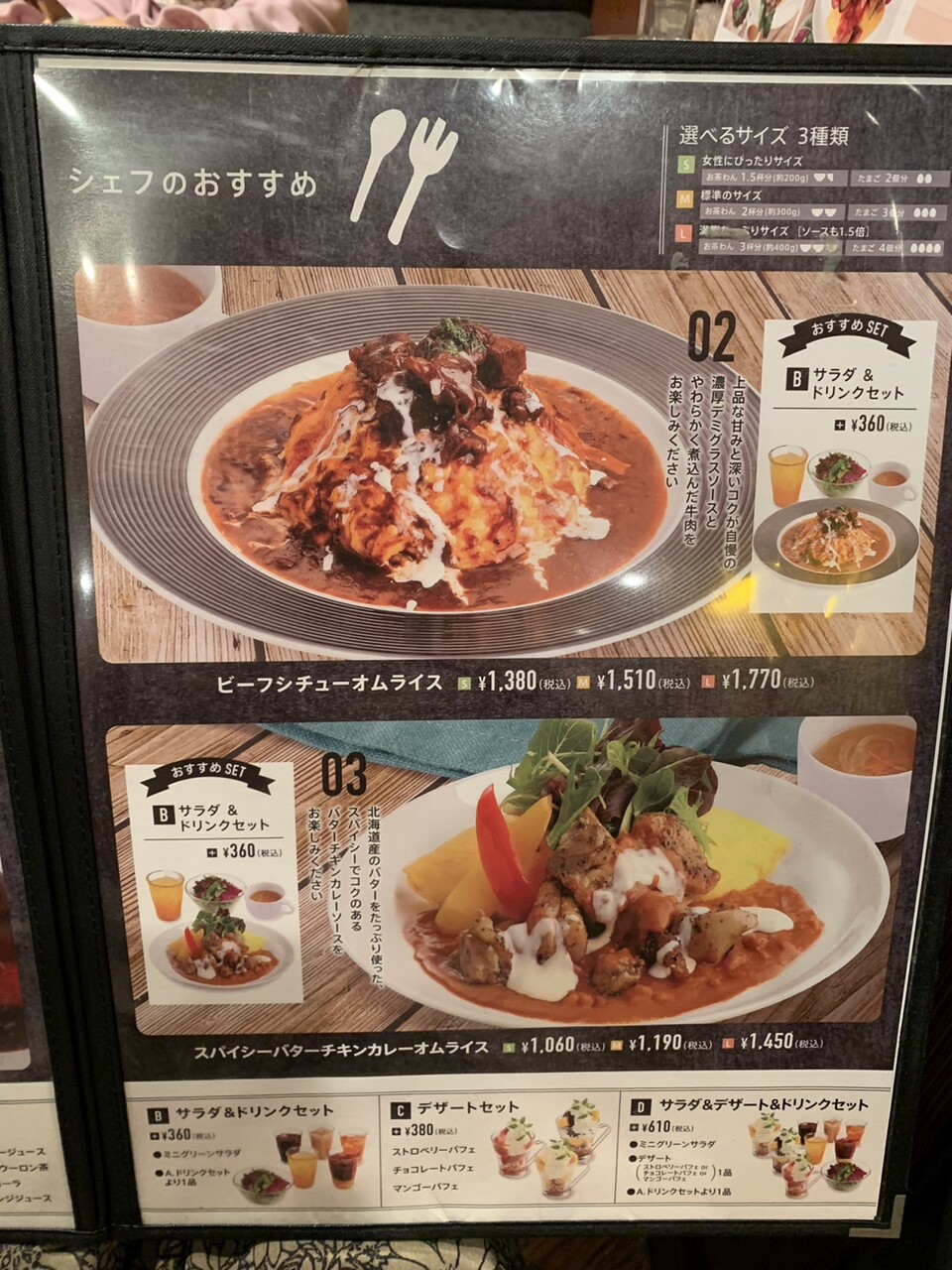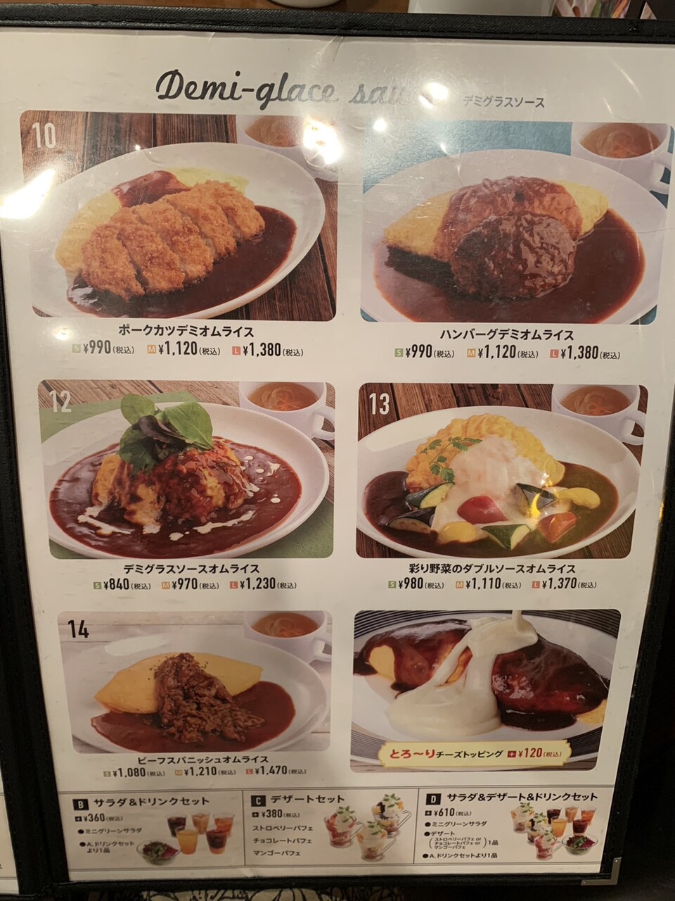 たくさん種類があります。 定番のプレーンオムライスと、デミグラスソースオムライスを注文しました。