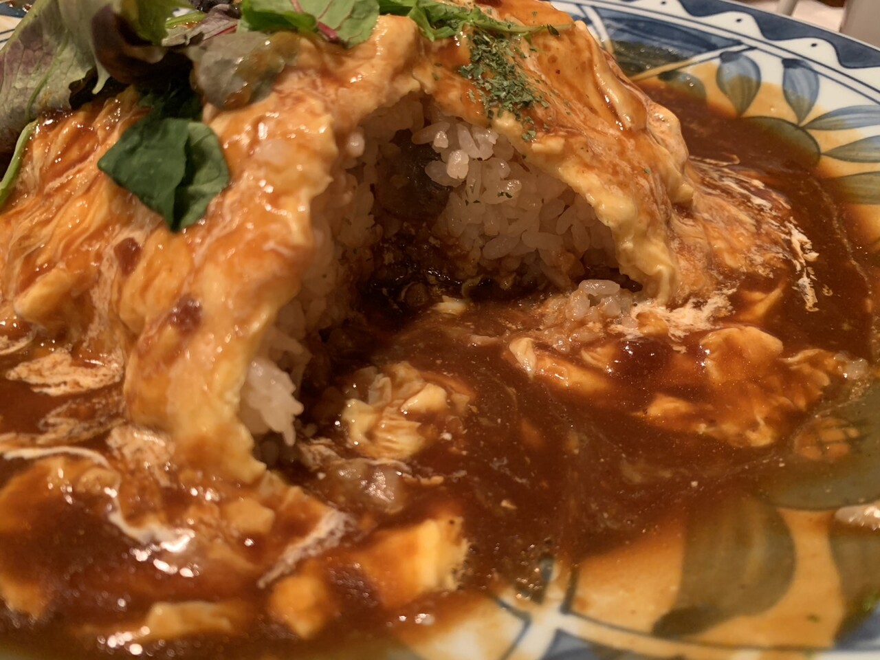 中はバターライス。たっぷりのデミグラスソースがかかっていて、濃厚な味わい。食べごたえがある一皿でした。