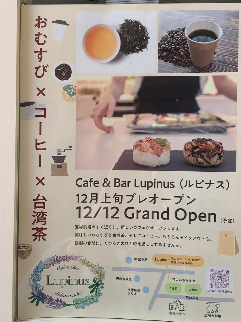 宝塚劇場のすぐ近く、花のみちセルカ1番館2F に「おむすび × コーヒー × 台湾茶」というキワードでの新しいカフェがオープンするそうです。(宝塚ホテルの向かいです)