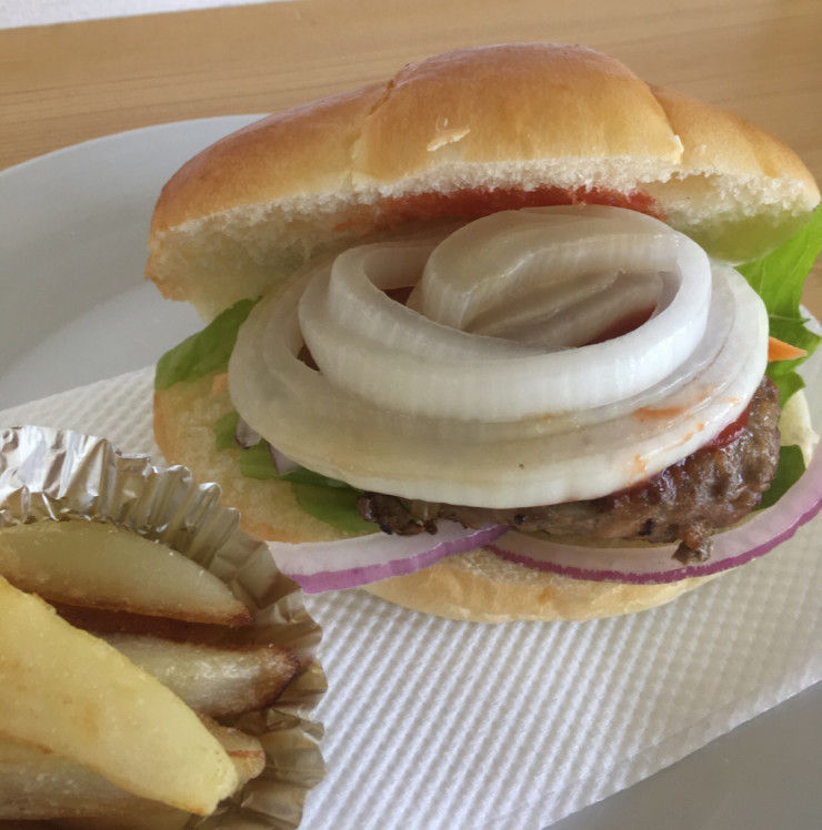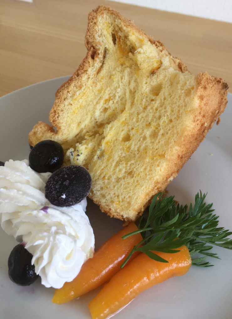 「新玉ねぎたっぷりバーガー」と「ニンジンのシフォンケーキ」