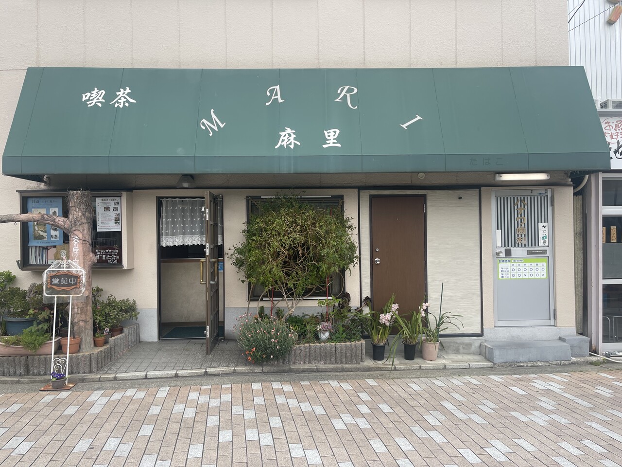 清荒神駅の北出口を出るとすぐ目に入るのが、こちらの喫茶店、「喫茶麻里」です。