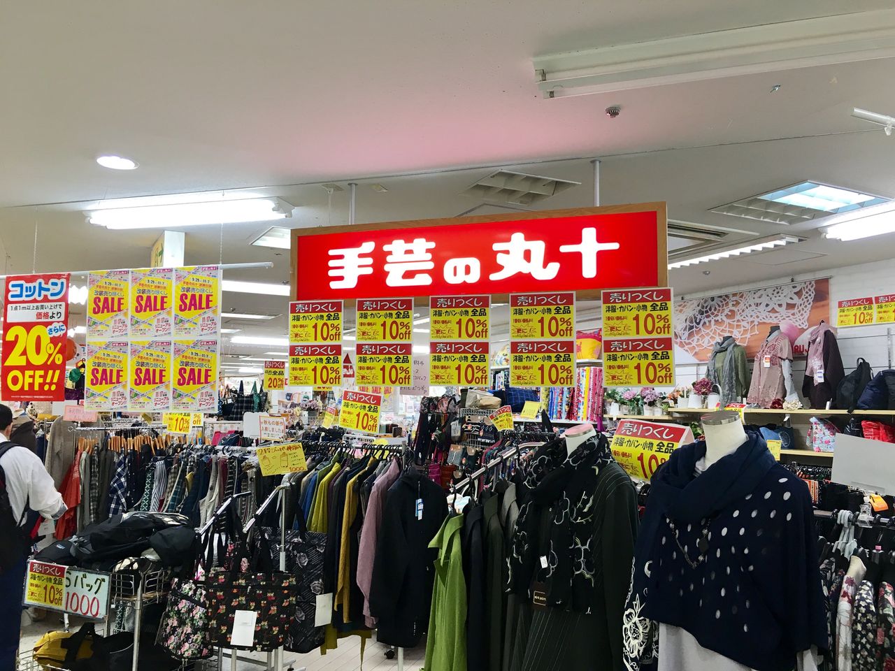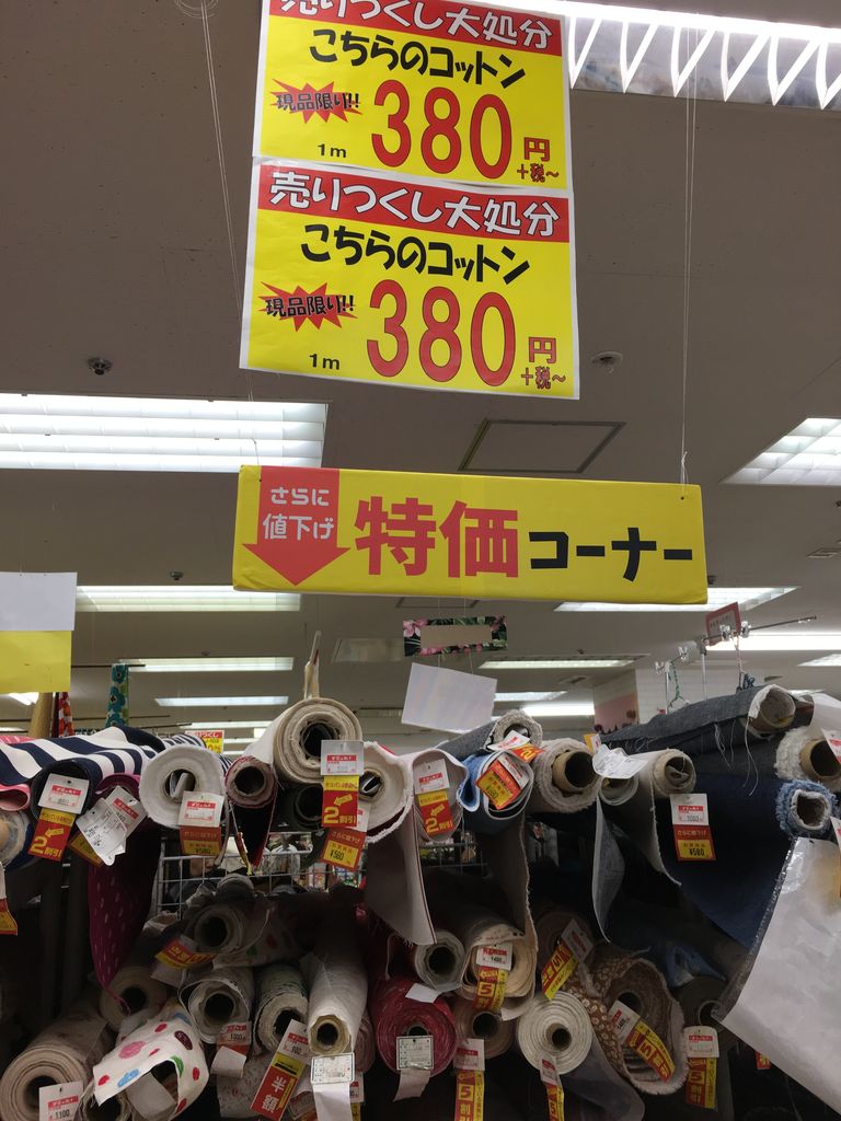 コットンなど布類全般20%オフ。