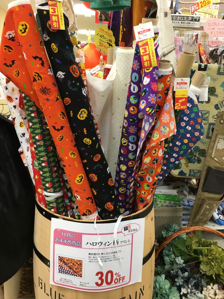 今すぐ使えるハロウィン柄やクリスマス柄の布は30%オフ。