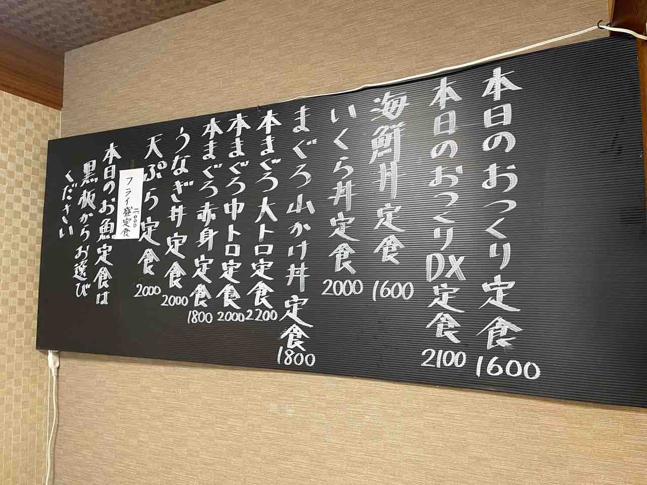 こちらの黒板が本日のお魚定食のメニュー、淡路島産の魚が豊富です。